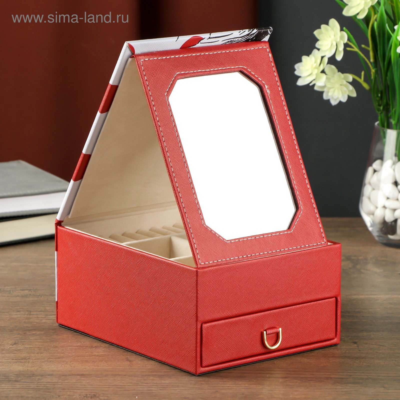 Шкатулка кожзам для украшений "Мадам с книгой" красная 8.7х18.2х14.3 см, 18.2x14.3x8.7 см., Китай