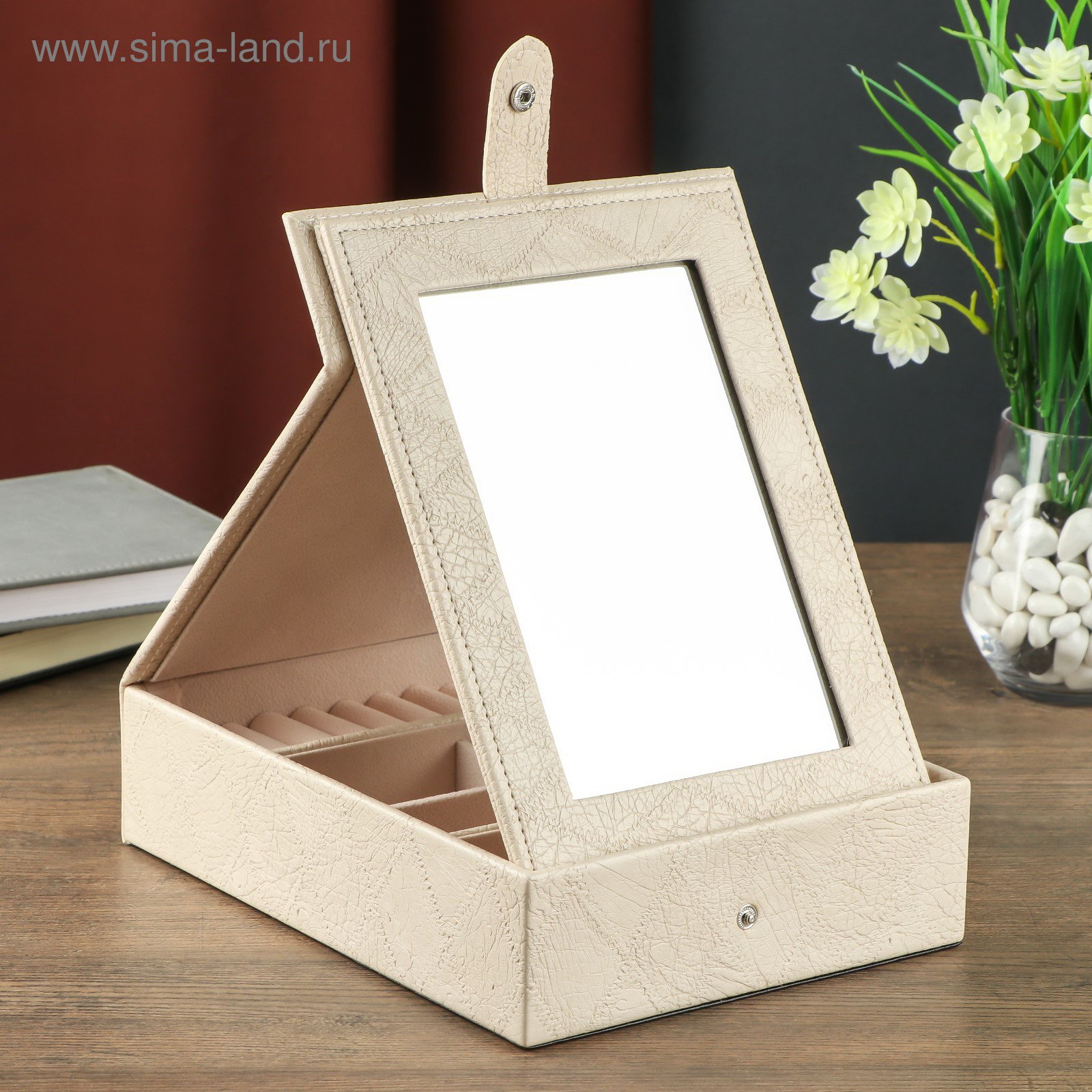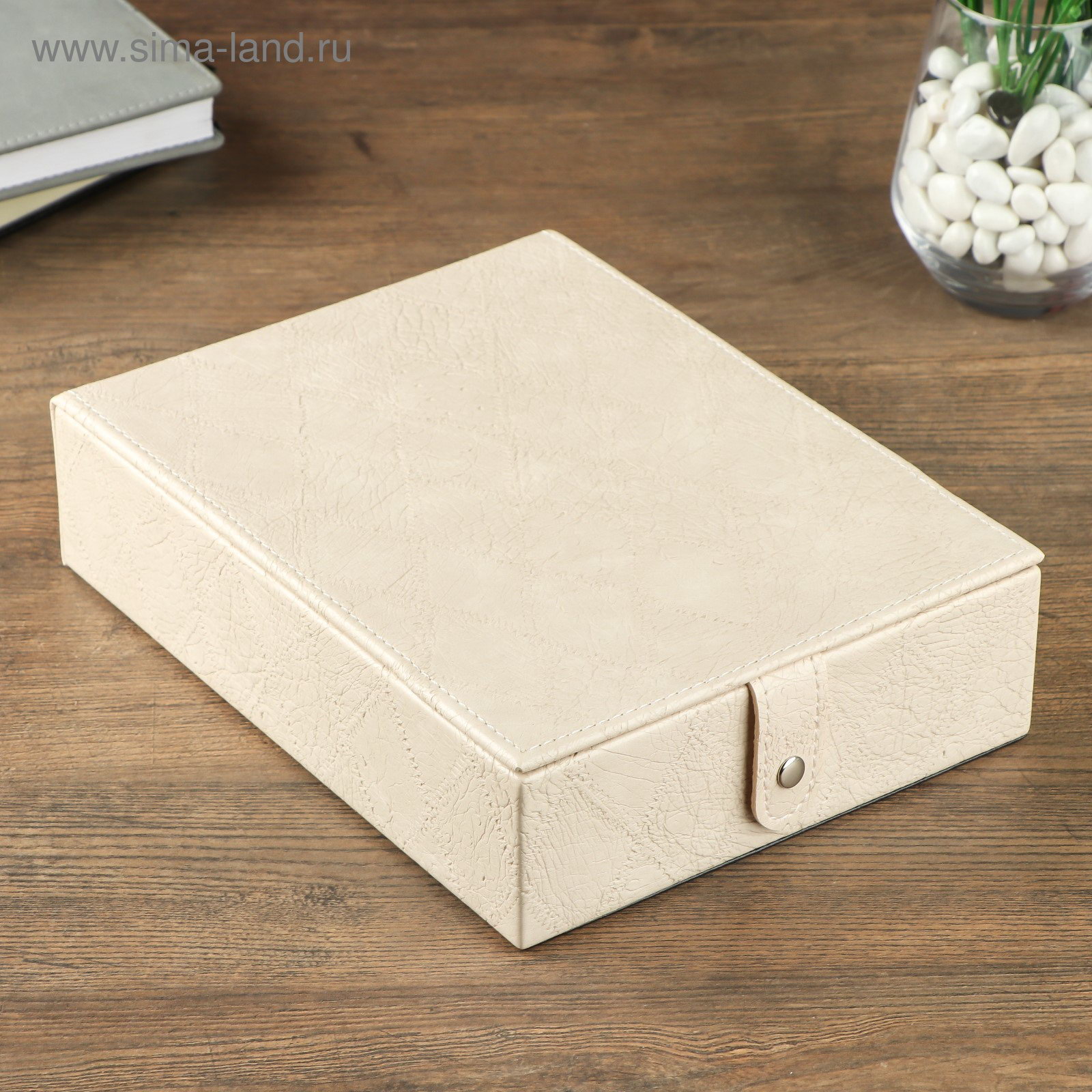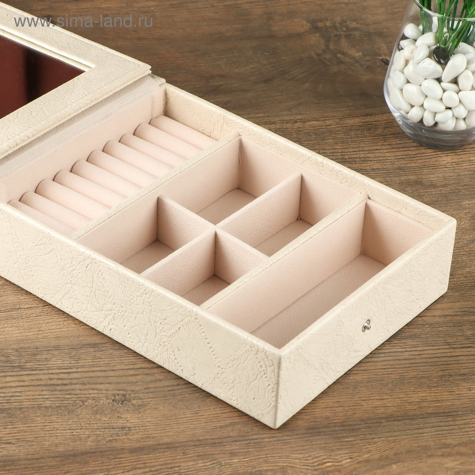 Шкатулка кожзам для украшений "Ромбики - кракелюр" бежевая 6х18х24 см, 18x24x6 см., Китай