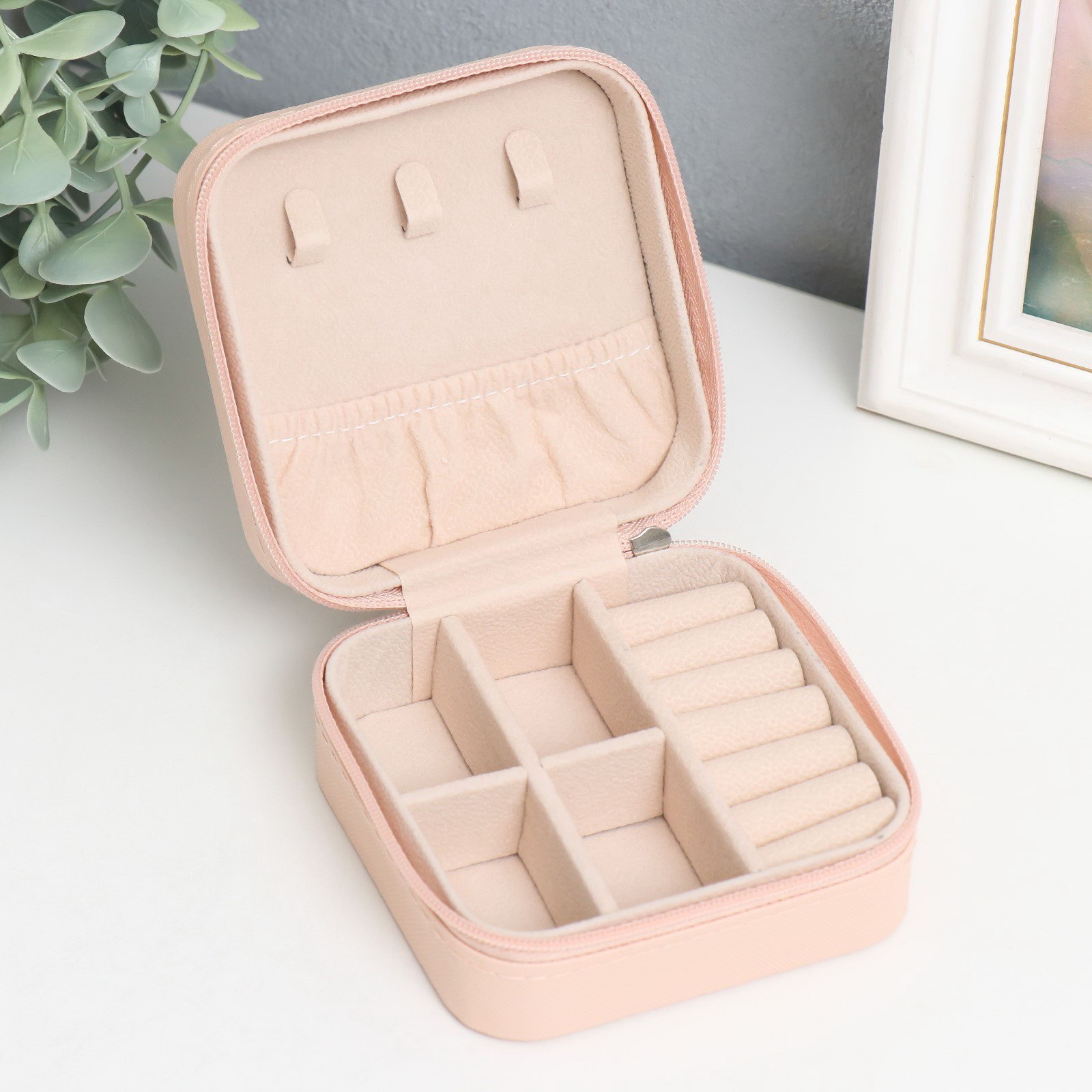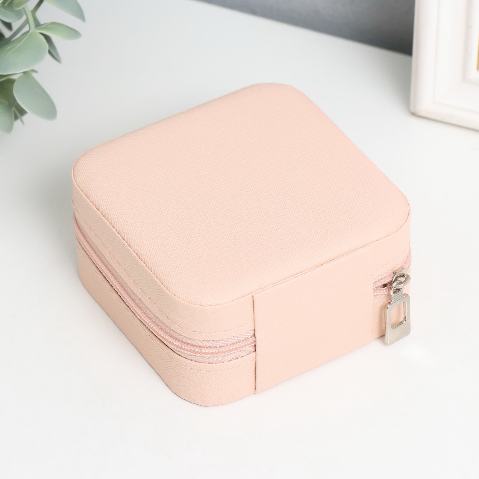 Шкатулка кожзам для украшений "Элегия. Квадратная" розовый 5х10х10 см, 10x10x5 см., Китай