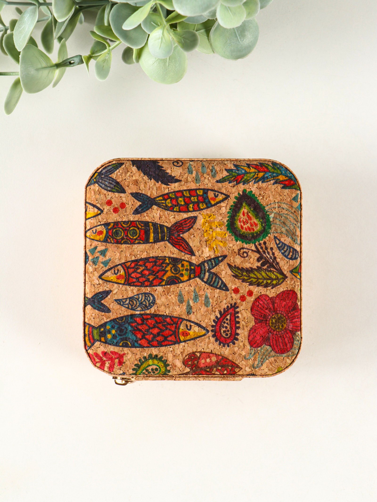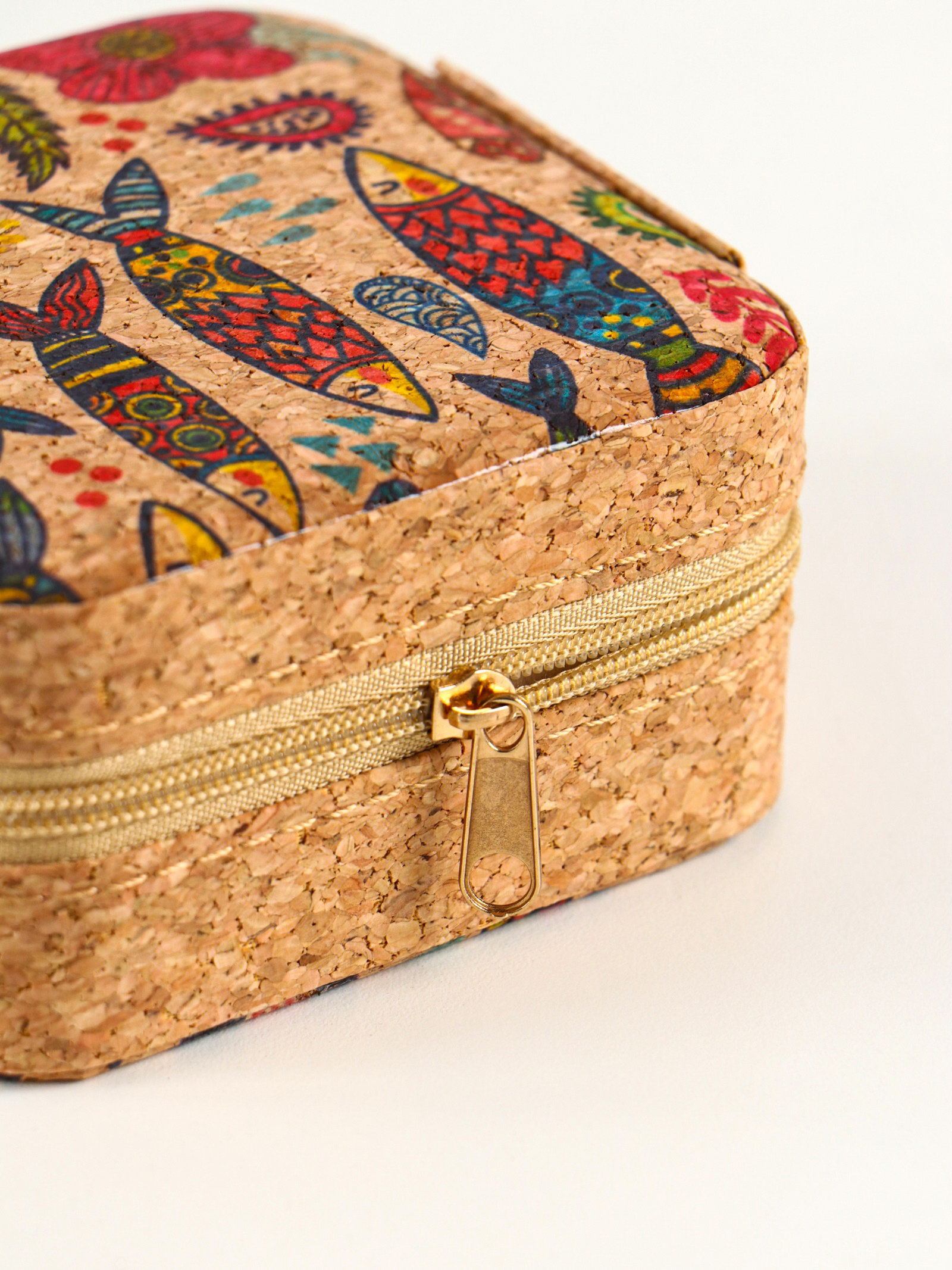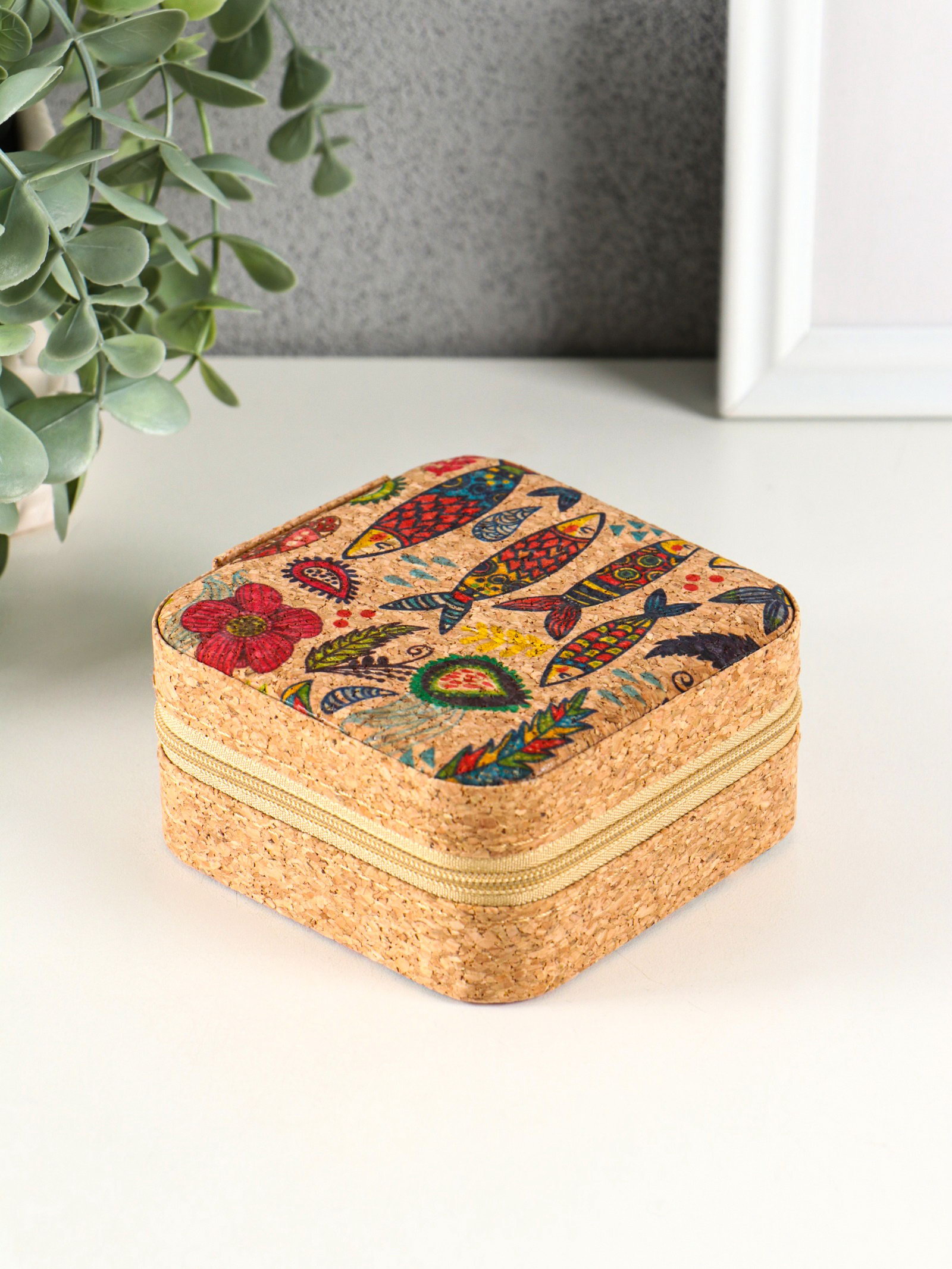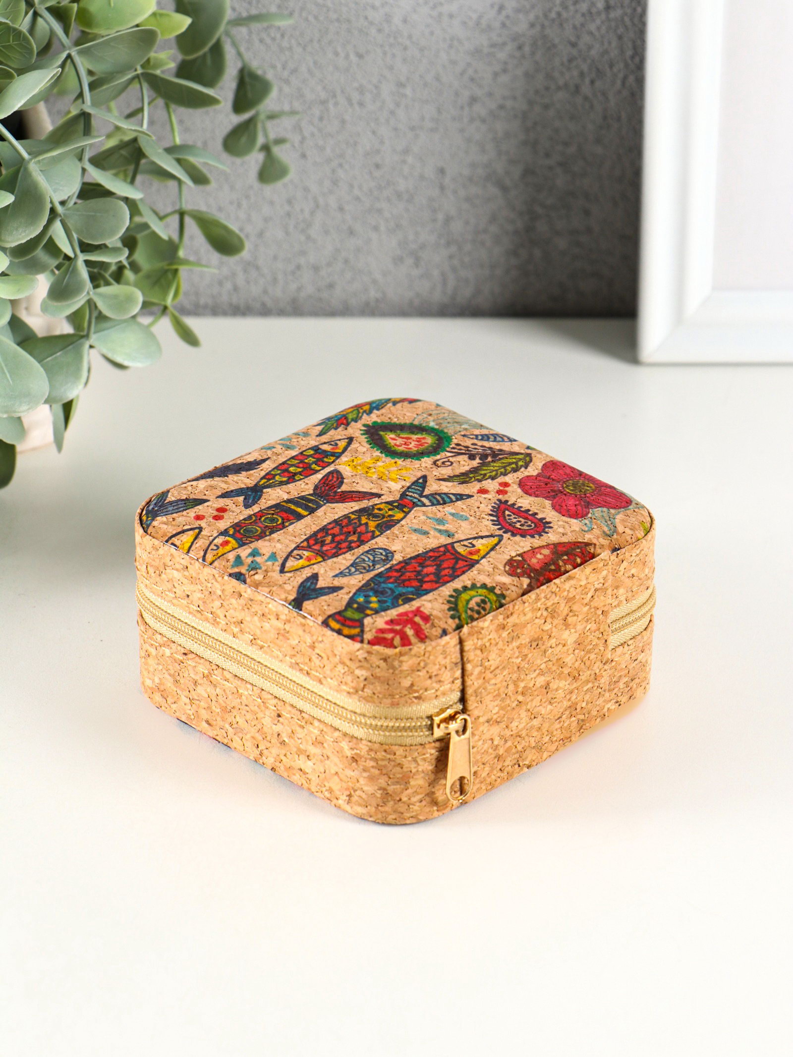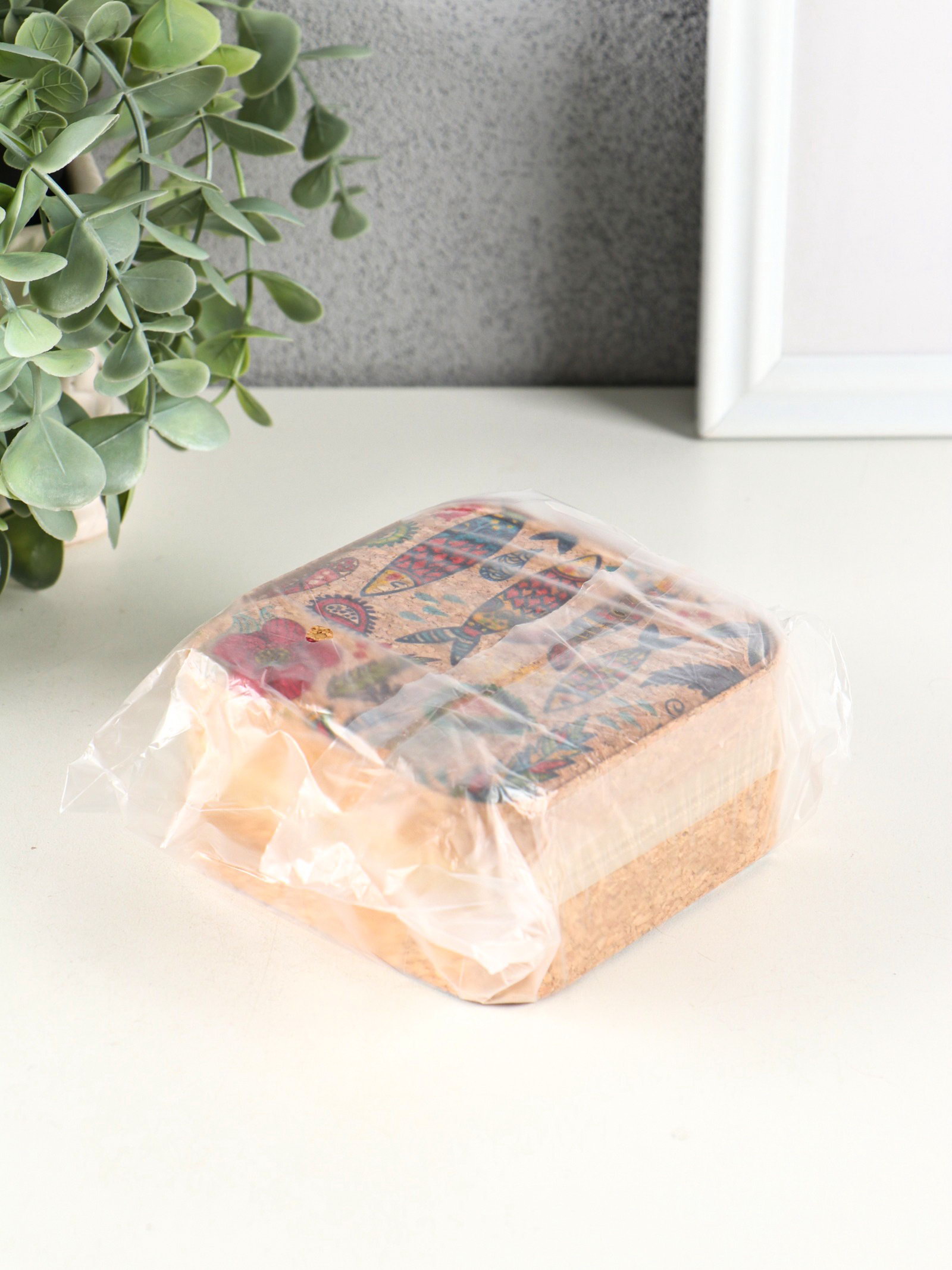Шкатулка для украшений "Рыбки", пробка, кожзам, 10x10x5 см, 10x10x5 см., Китай