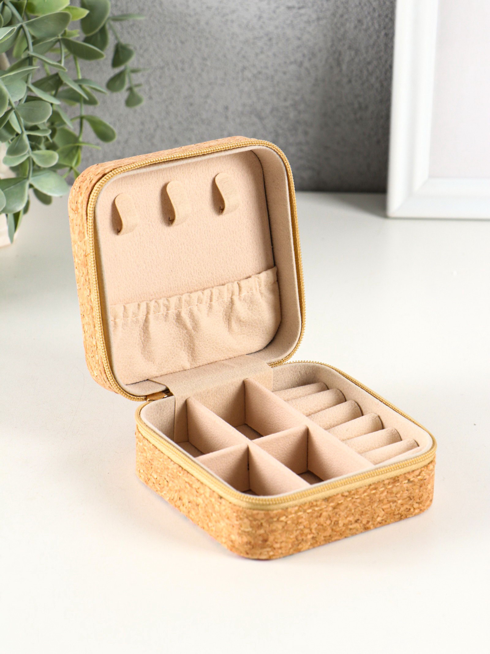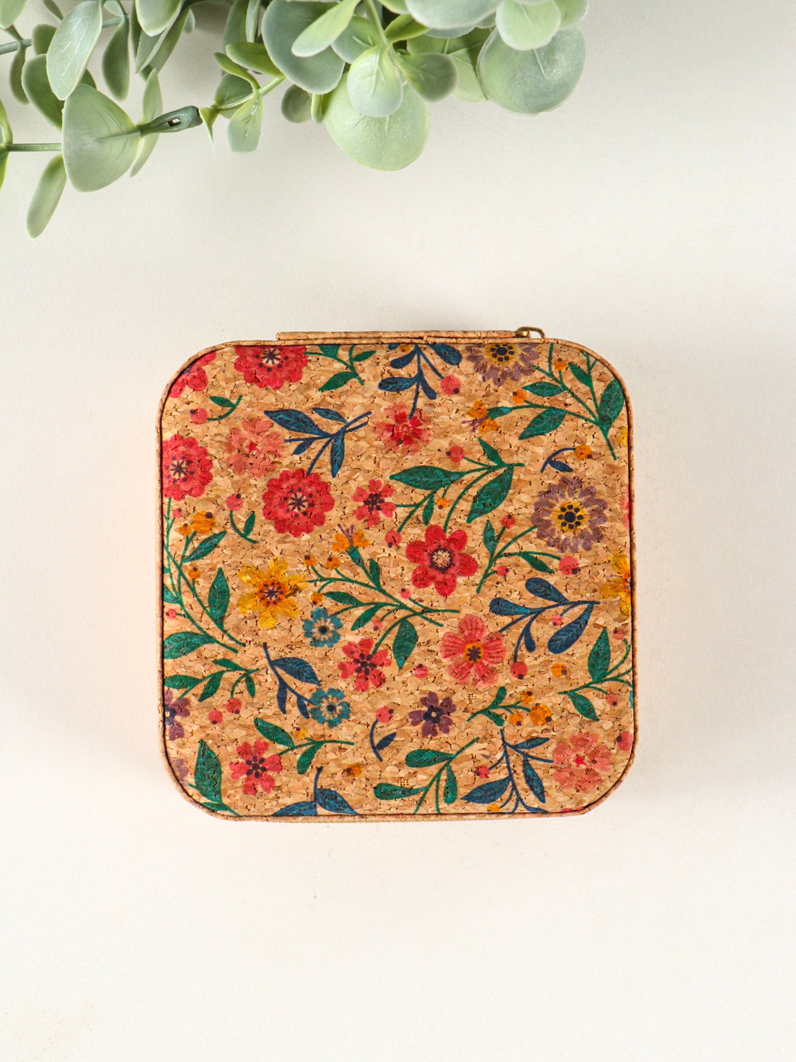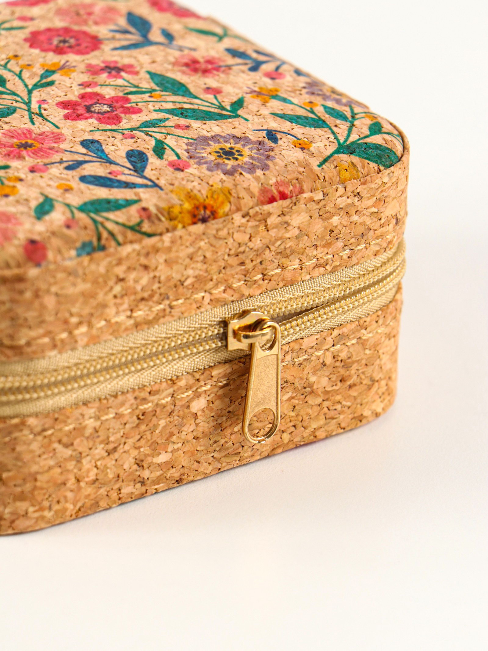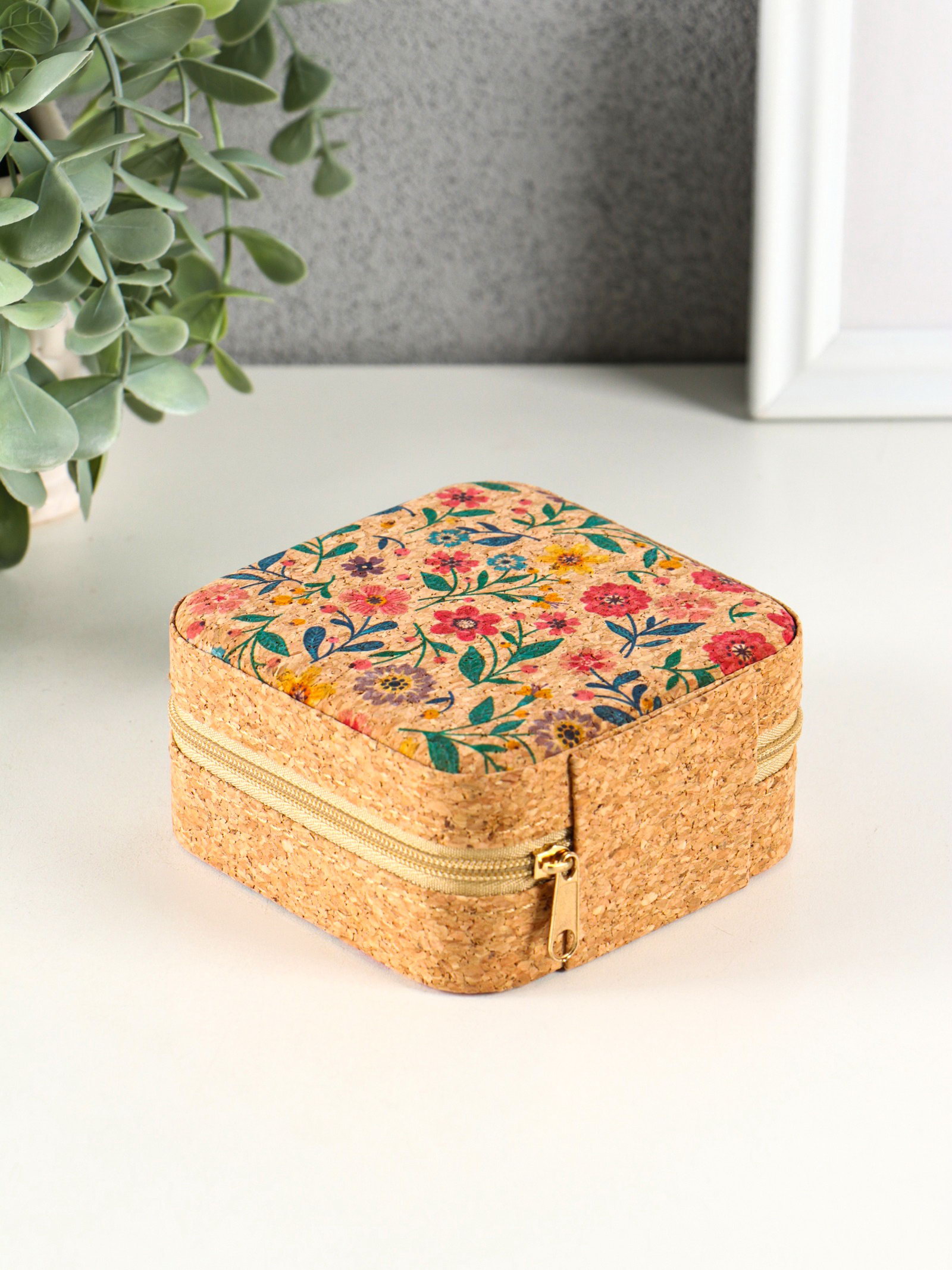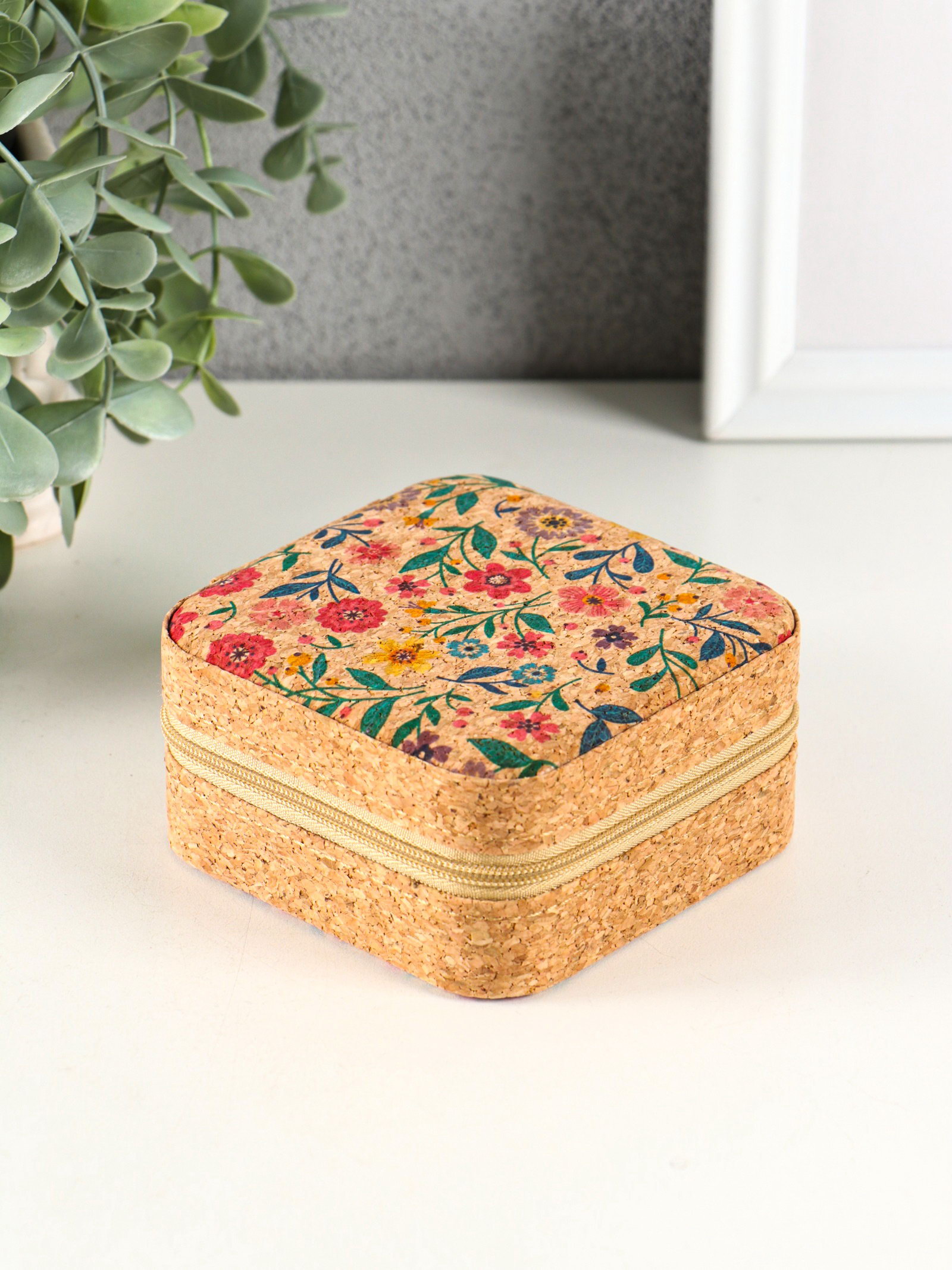 Шкатулка для украшений "Цветочная", пробка, кожзам, 10x10x5 см, 10x10x5 см., Китай