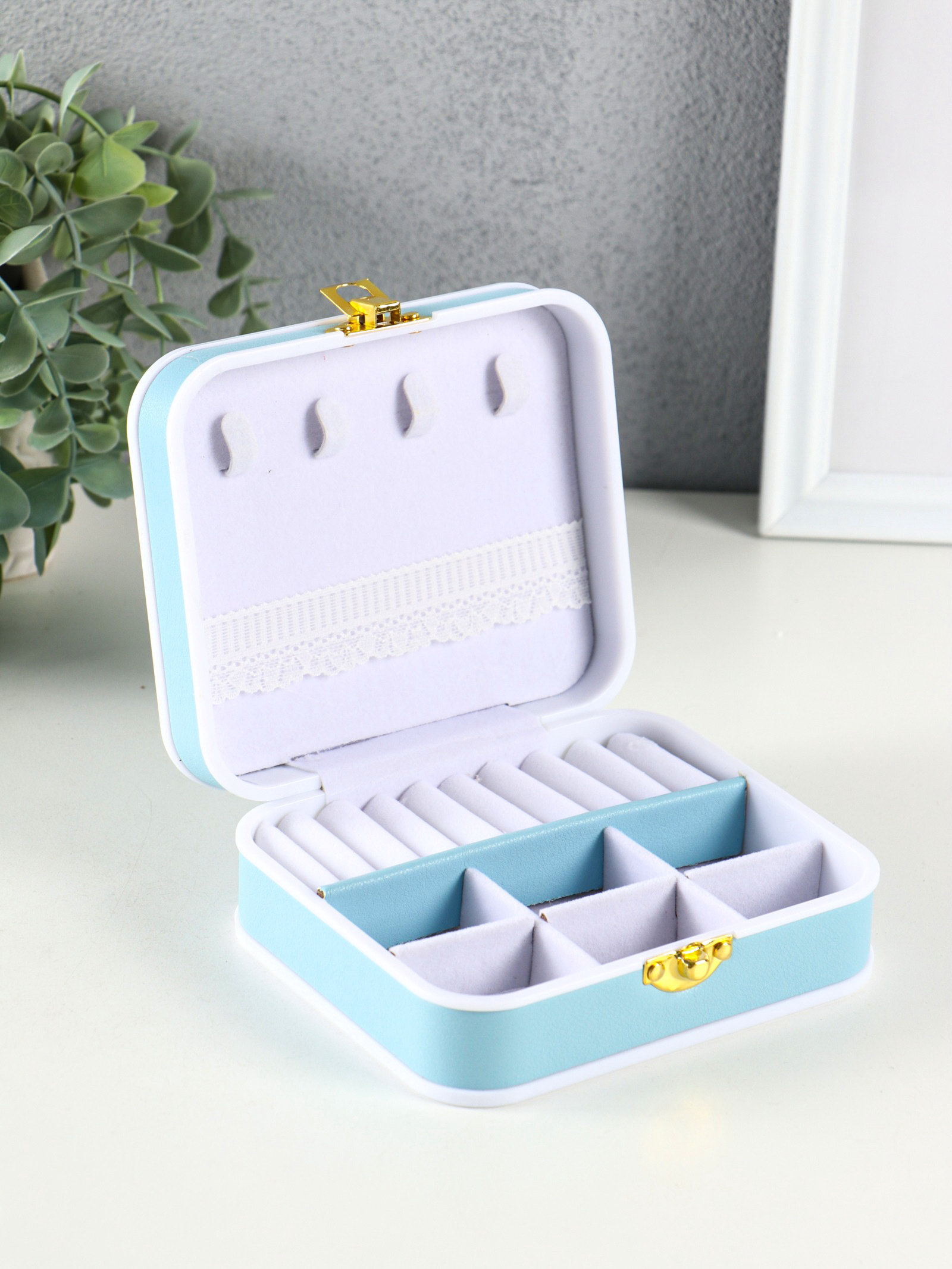 Шкатулка для украшений Giulia, пластик, кожзам, 6 ячеек, 10 полос, голубая, 13.5x11.5x5.5 см, 11.5x13.5x5.5 см., Китай
