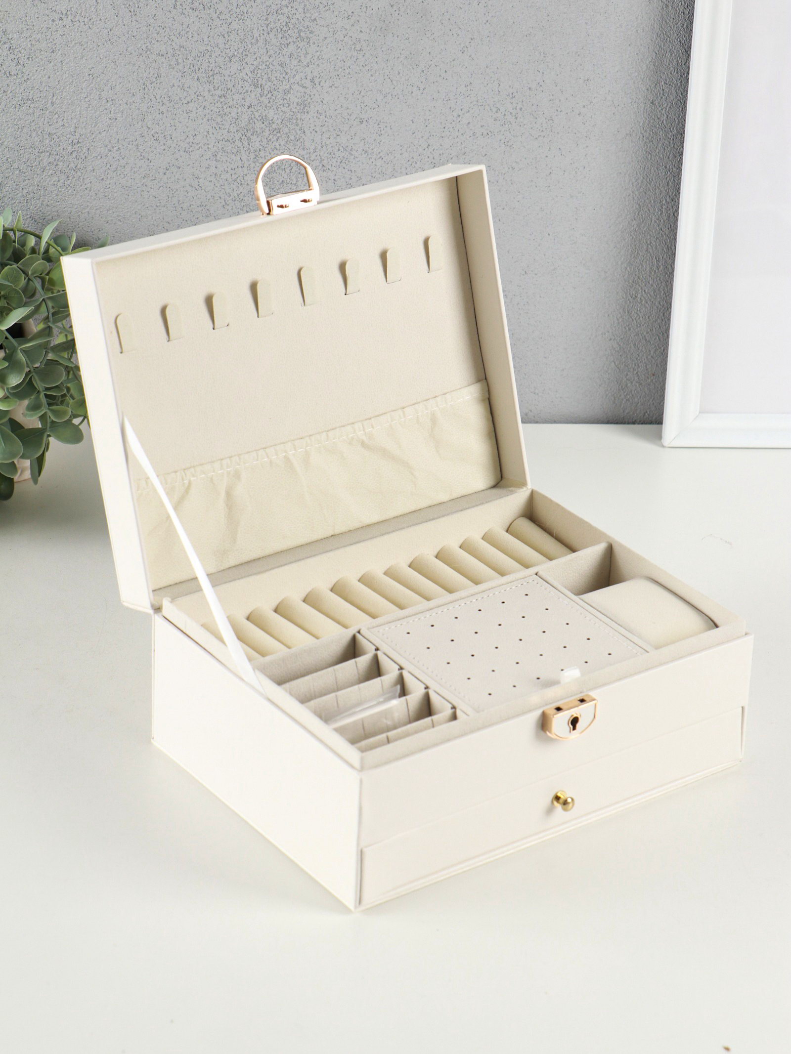 Порядок в деталях Разделители внутри помогают разложить даже мелкие серьги-пусеты, предотвращая их потерю. Верхний ярус удобен для часто носимых вещей, а нижний для хранения более ценных или сезонных украшений. Шкатулка станет практичным решением, которое сбережёт ваши драгоценности от пыли и спутывания. | ||