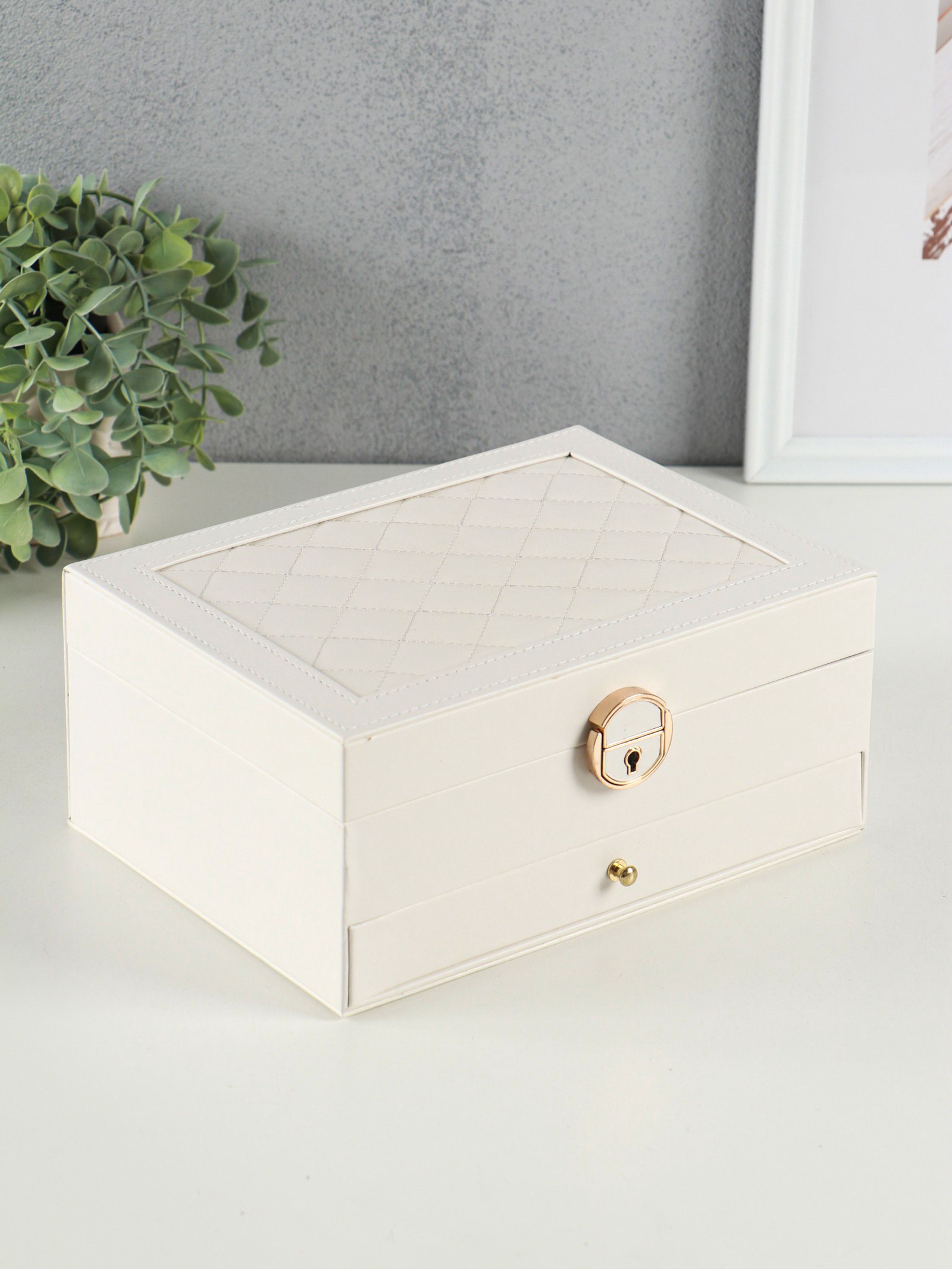 Шкатулка для украшений "Стёганная", 2 яруса, белая, 17.5x23.5x10.5 см, 17.5x23.5x10.5 см., Китай