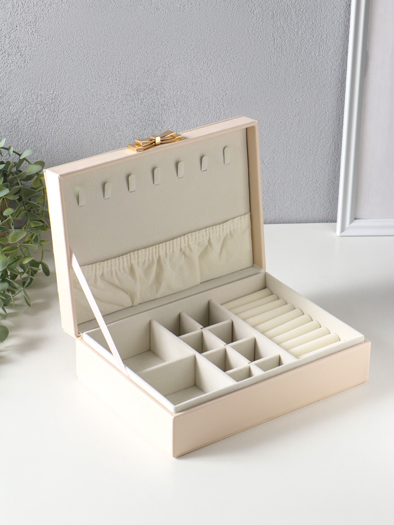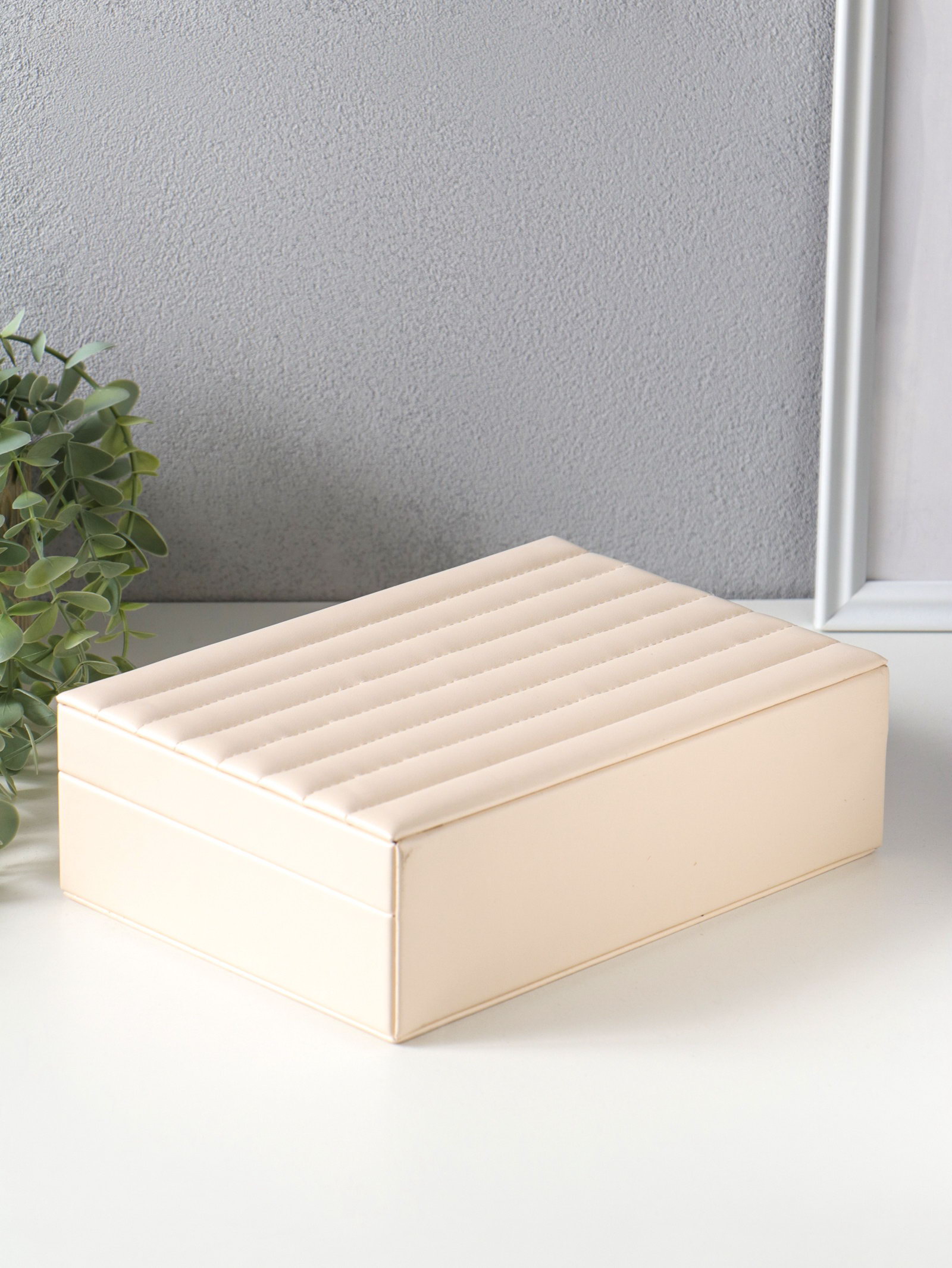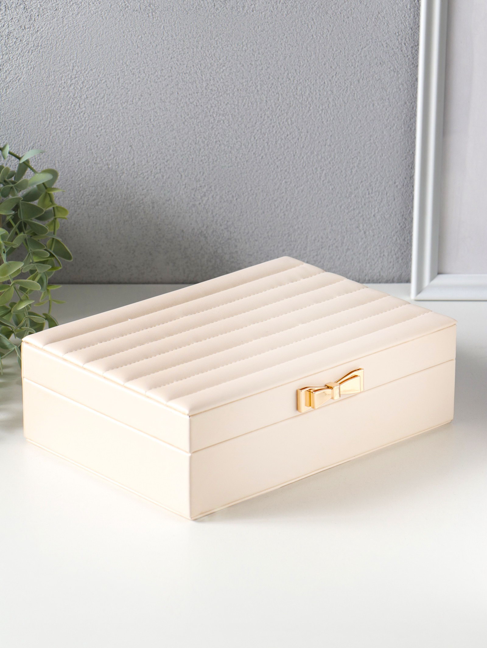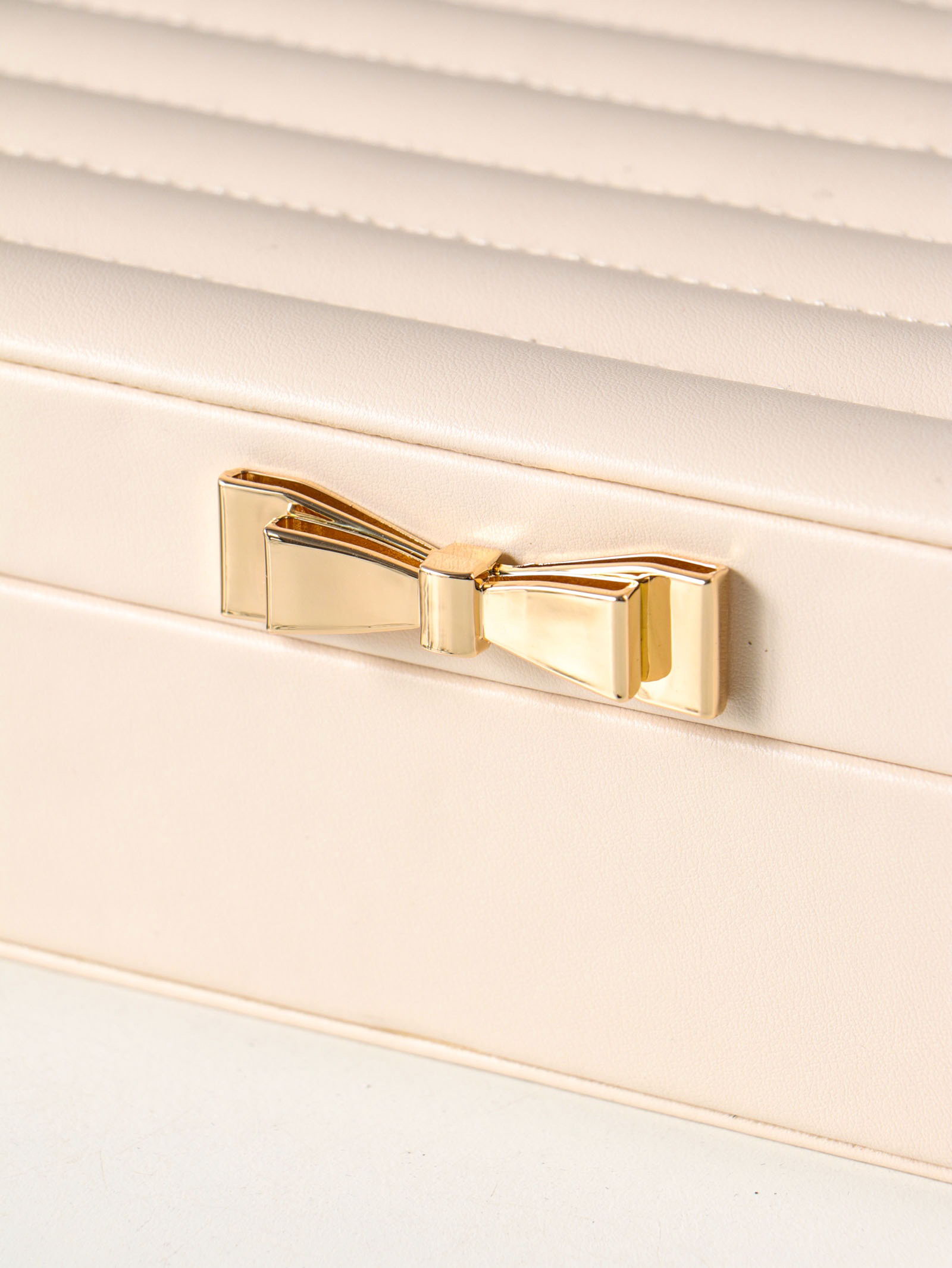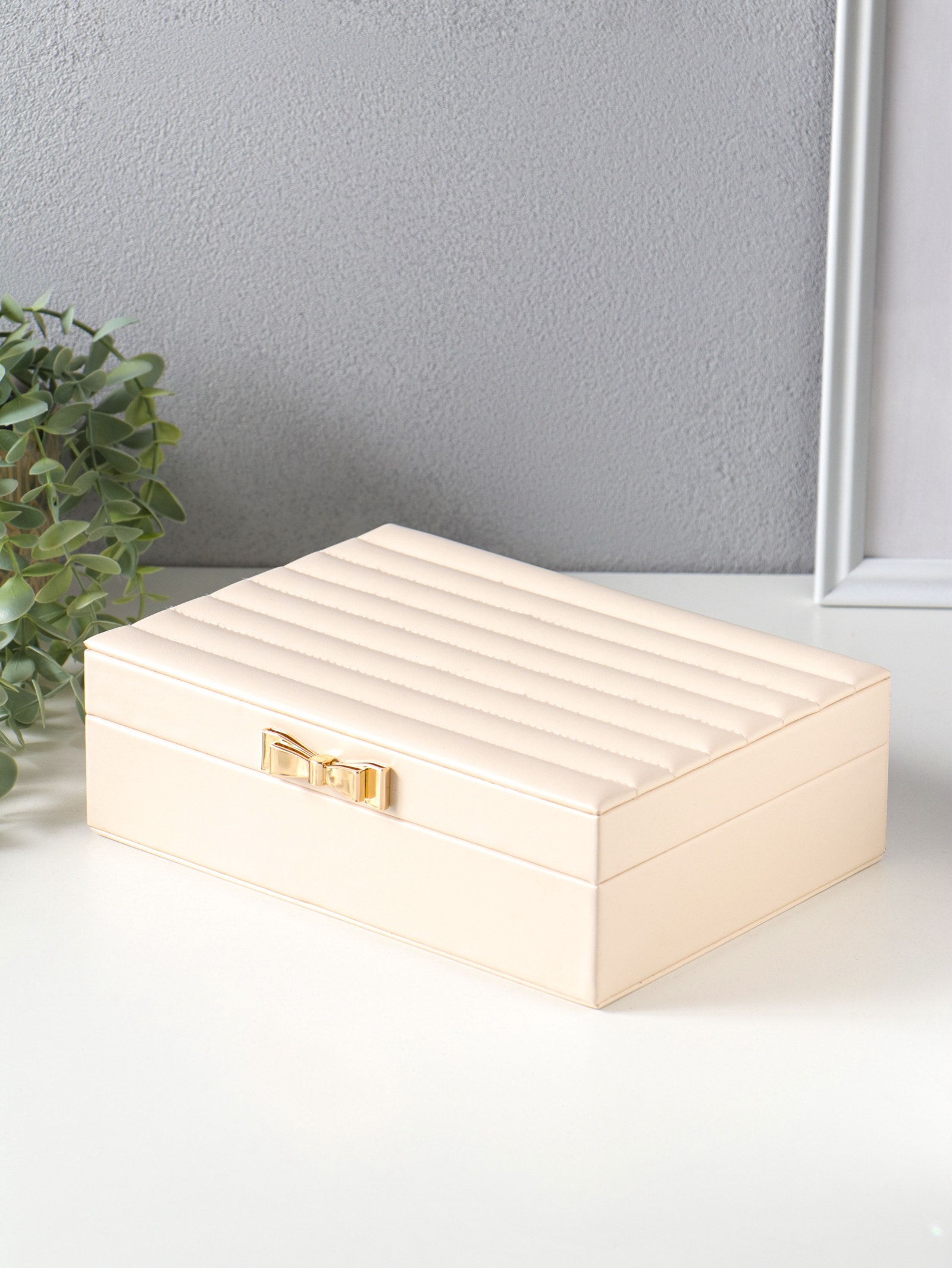 Шкатулка кожзам для украшений "Стёганная. Полоски. Бант" молочный 17х24х7 см, 24x17x7 см., Китай