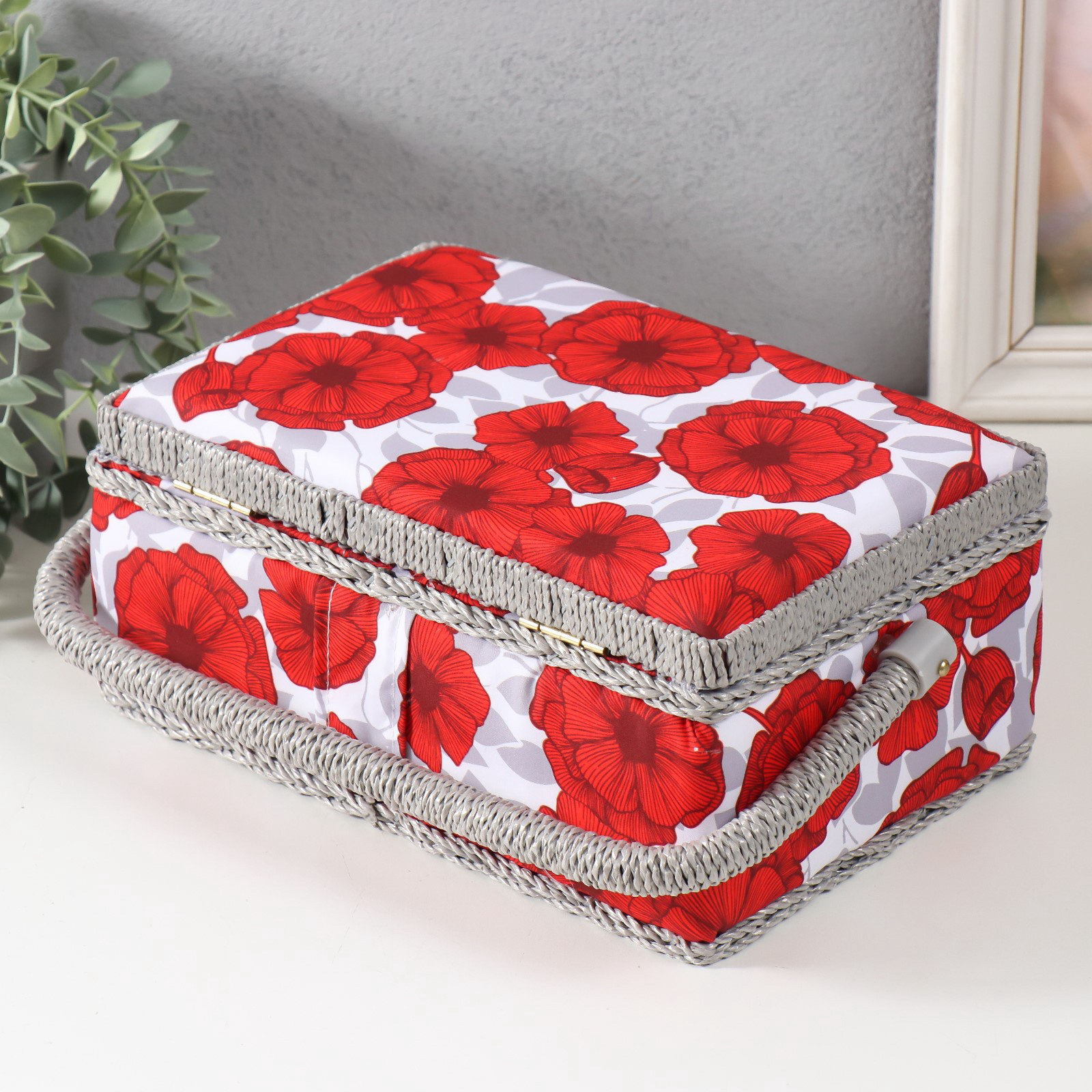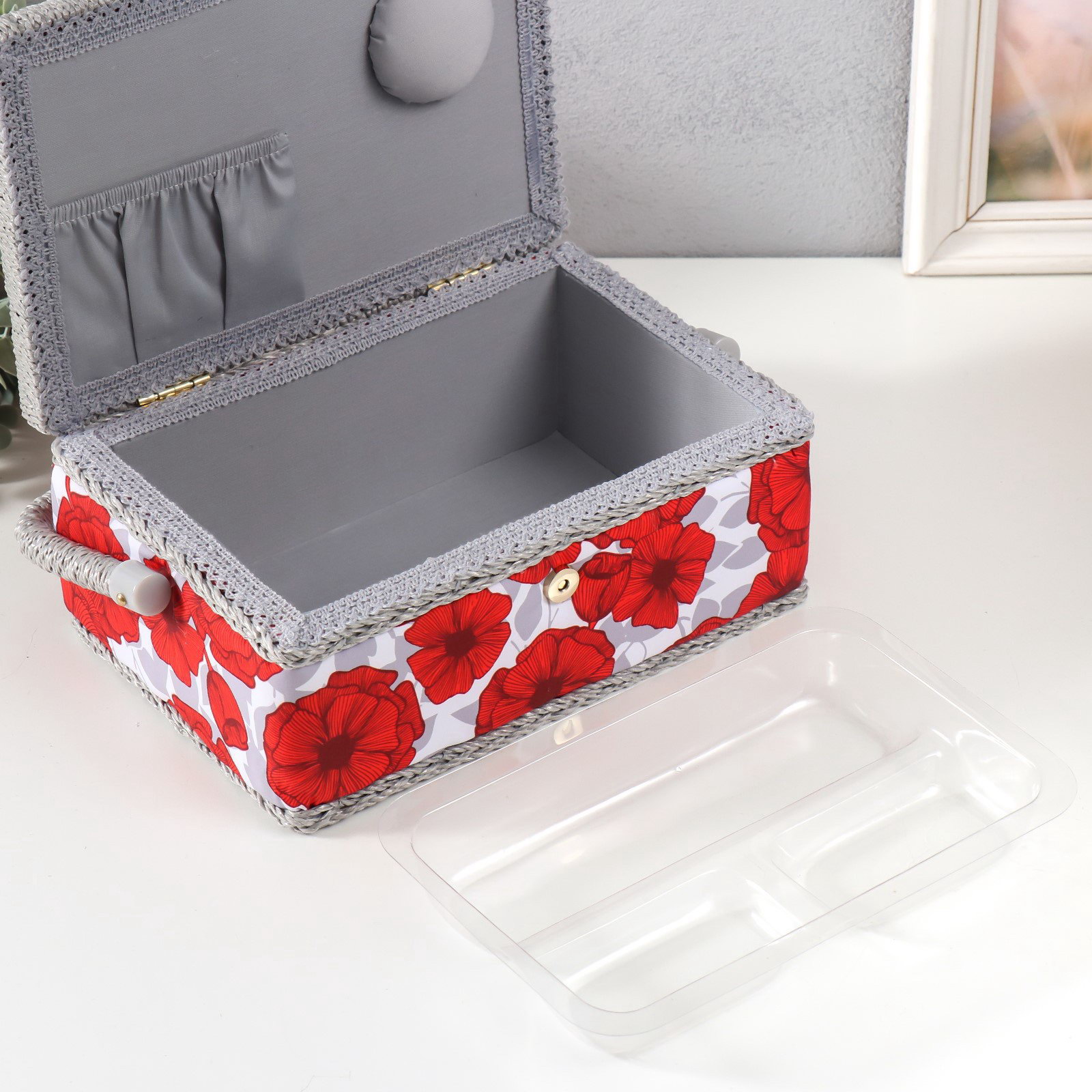 Шкатулка для рукоделия и шитья "Красные маки на белом", хранение ниток, иголок, мелочи, 24x16x11 см, 16x24x11 см., Китай