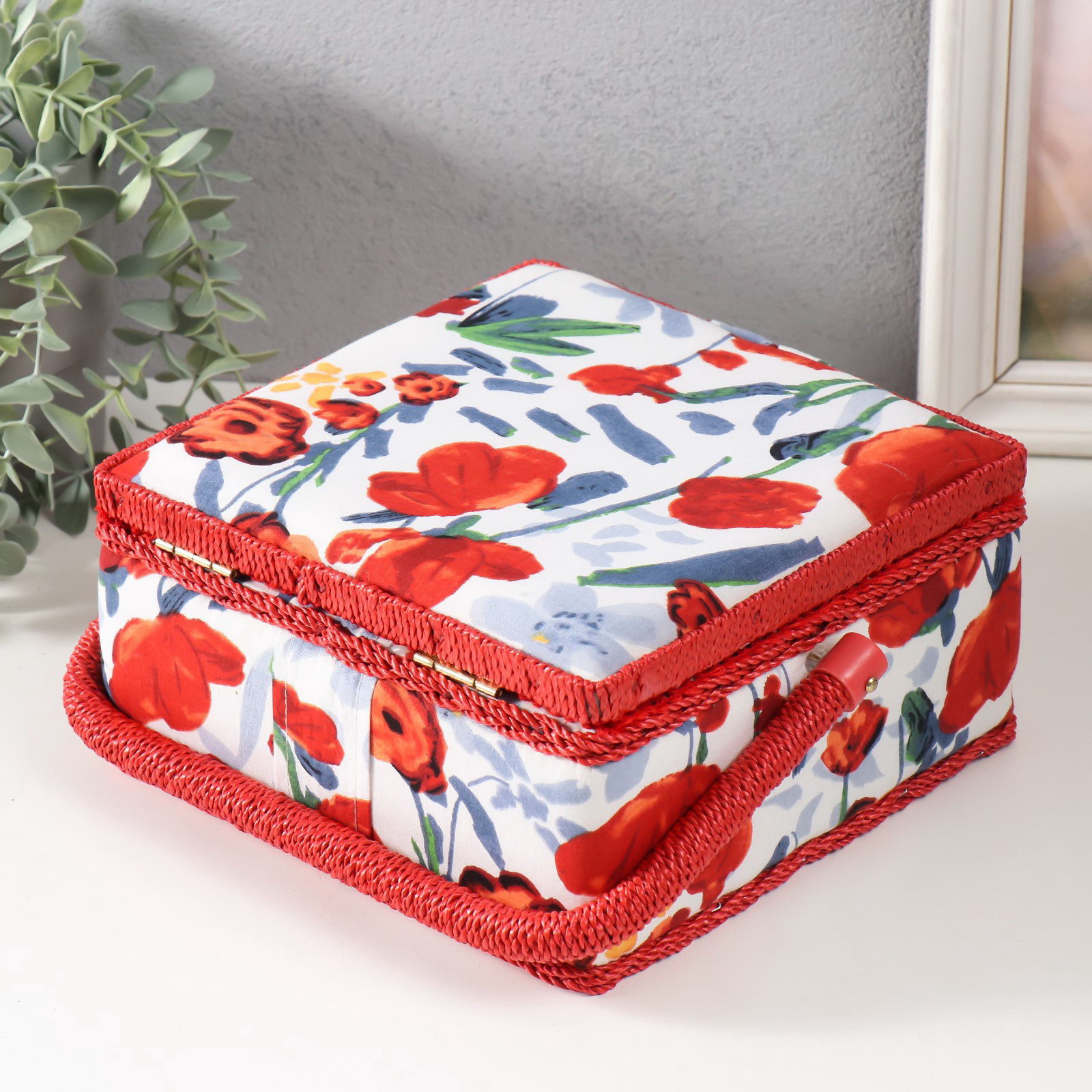 Шкатулка для рукоделия и шитья "Летние цветы на белом", хранение ниток, иголок, мелочи, 20х20х11 см, 20x20x11 см., Китай