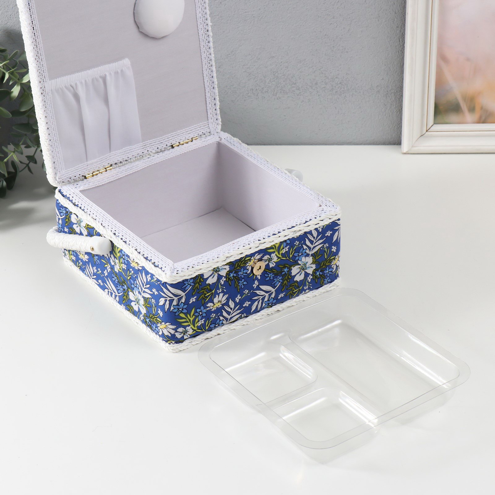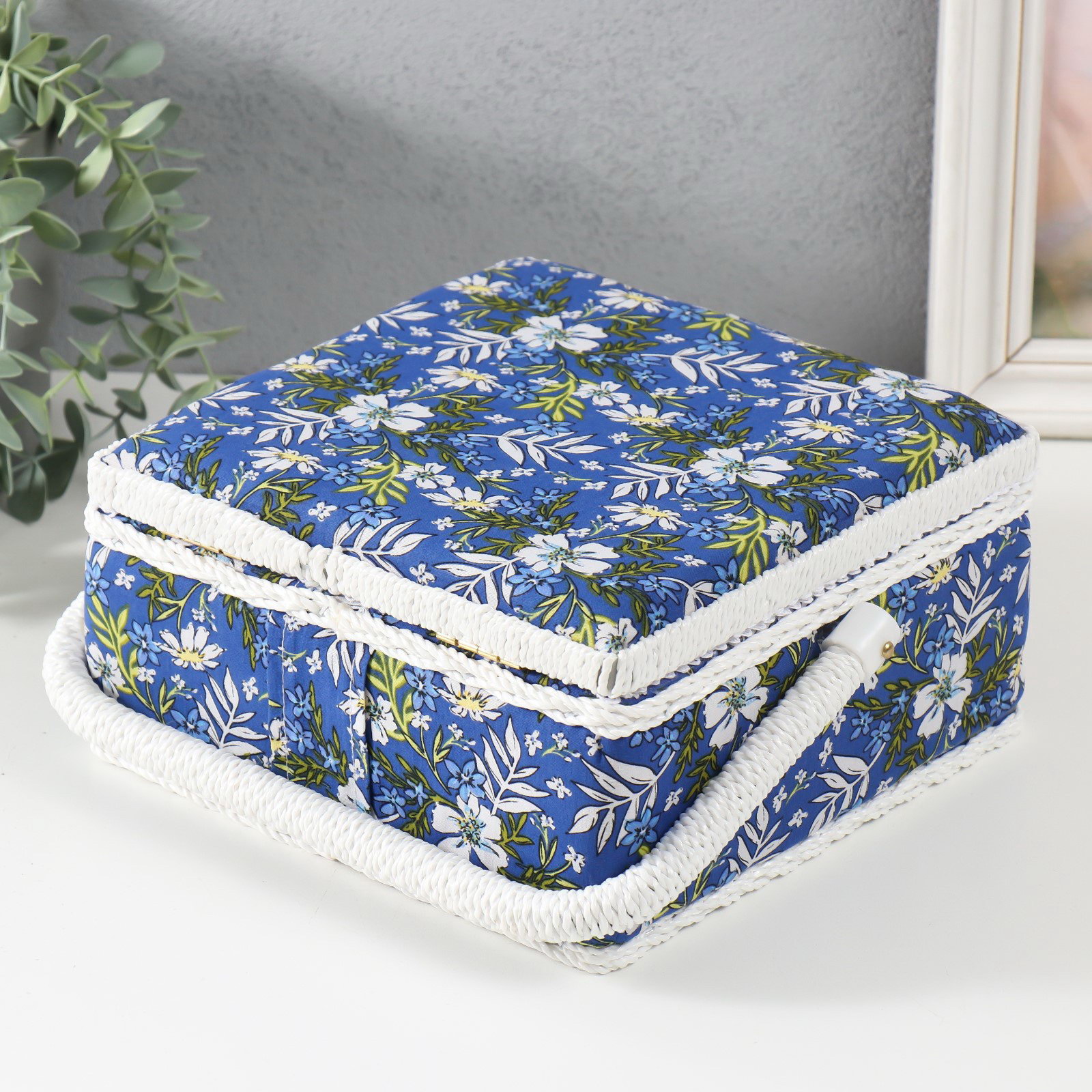 Шкатулка для рукоделия и шитья "Полевые цветы на синем", хранение ниток, иголок, мелочи, 20x20x11 см, 20x20x11 см., Китай