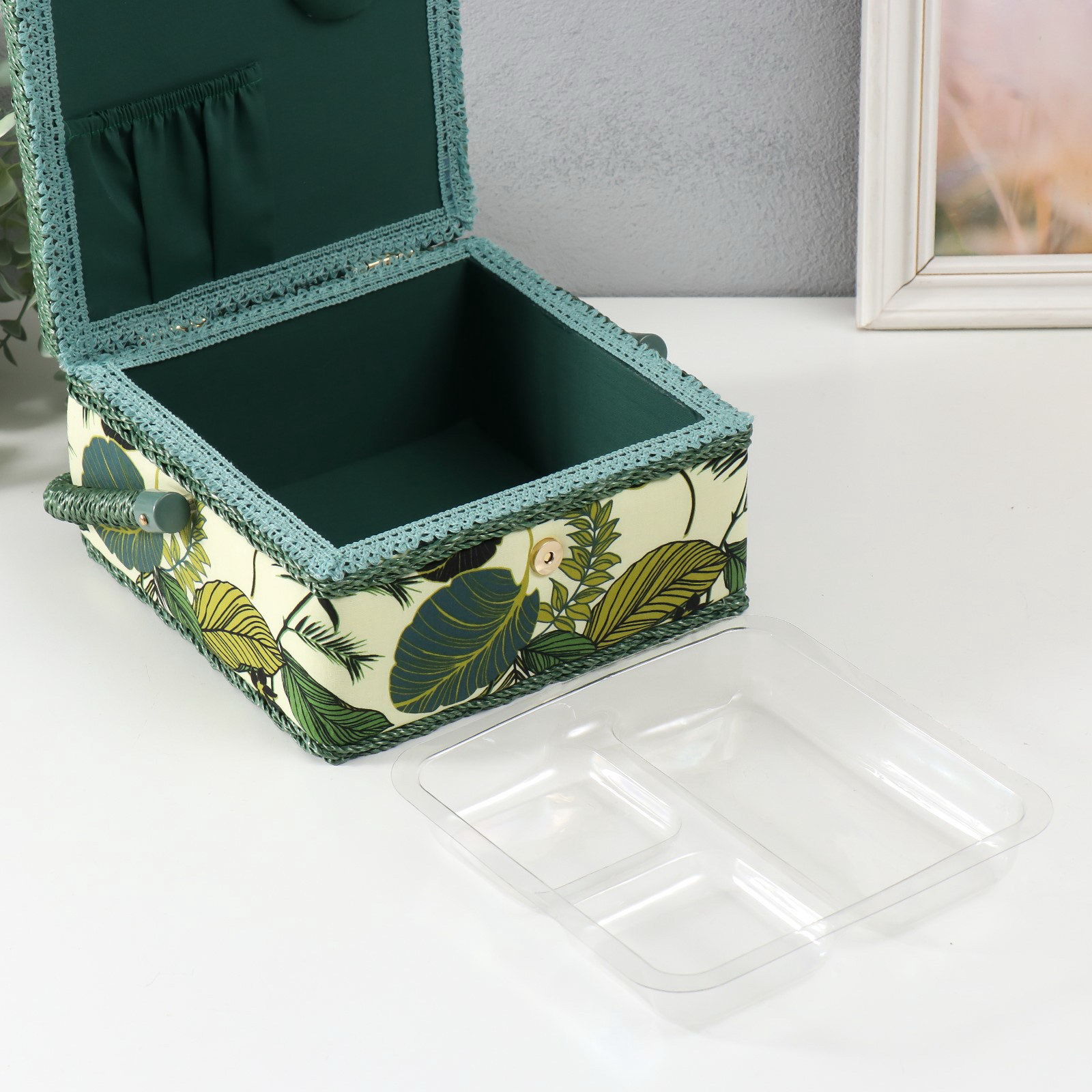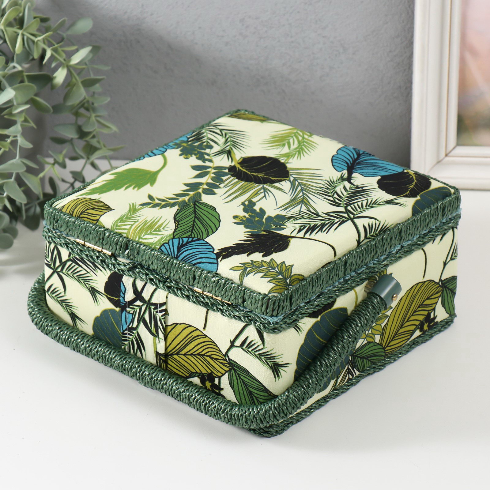 Шкатулка для рукоделия и шитья "Тропические листья на зелёном", хранение ниток, иголок, мелочи, 20x20x11 см, 20x20x11 см., Китай