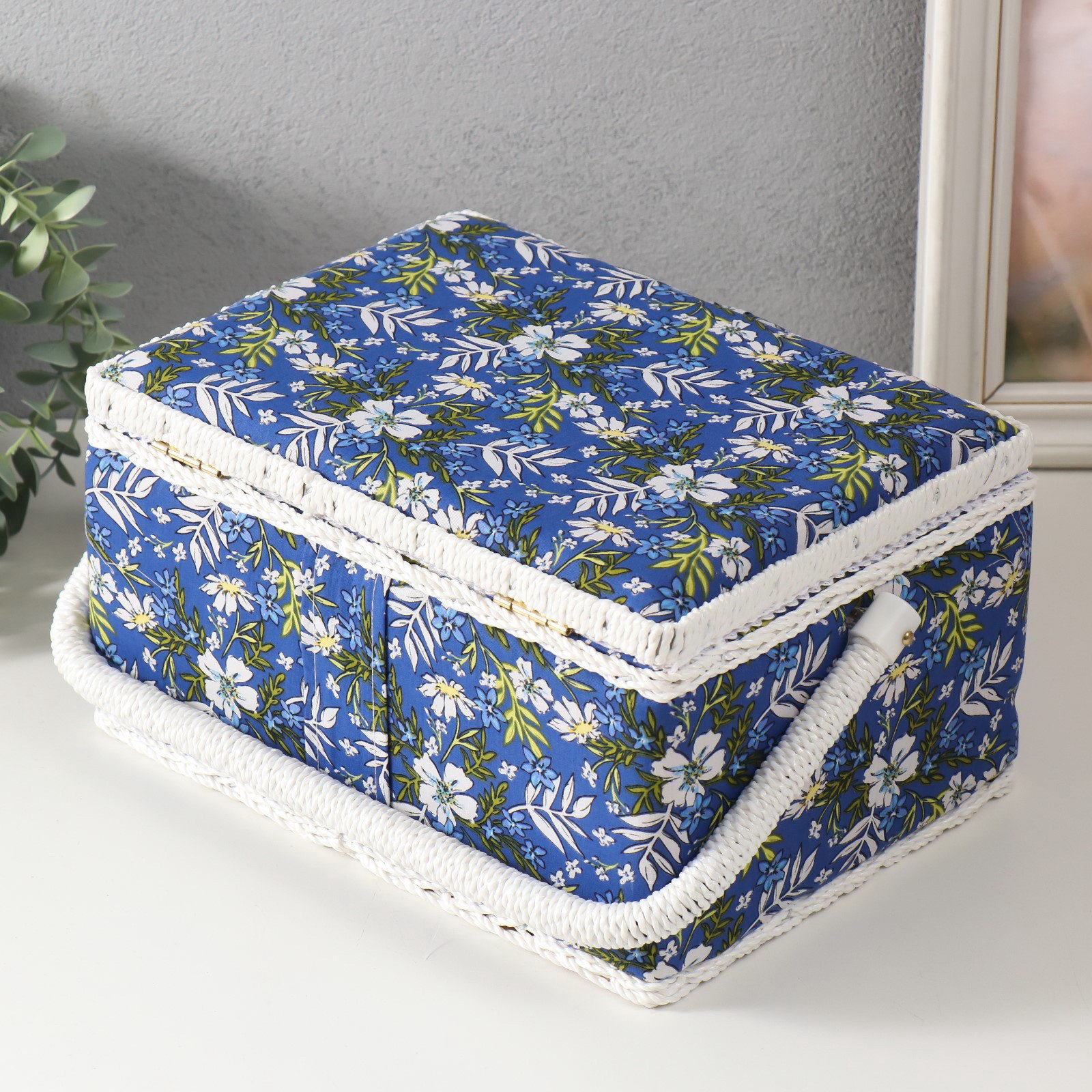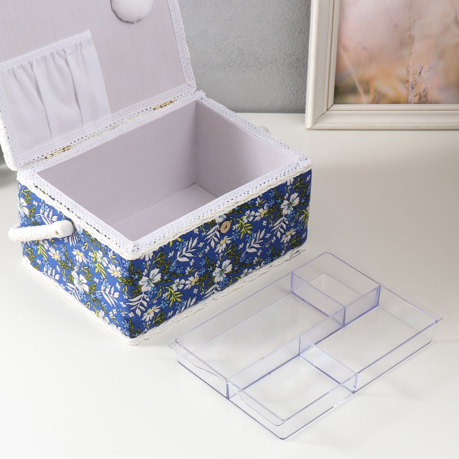 Шкатулка для рукоделия и шитья "Полевые цветы на синем", хранение ниток, иголок, мелочи, 19x26x14.5 см, 26x19x14.5 см., Китай