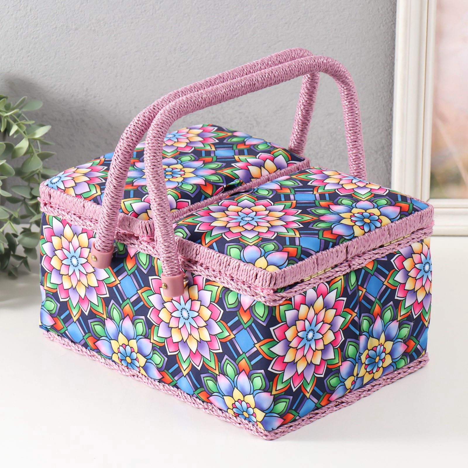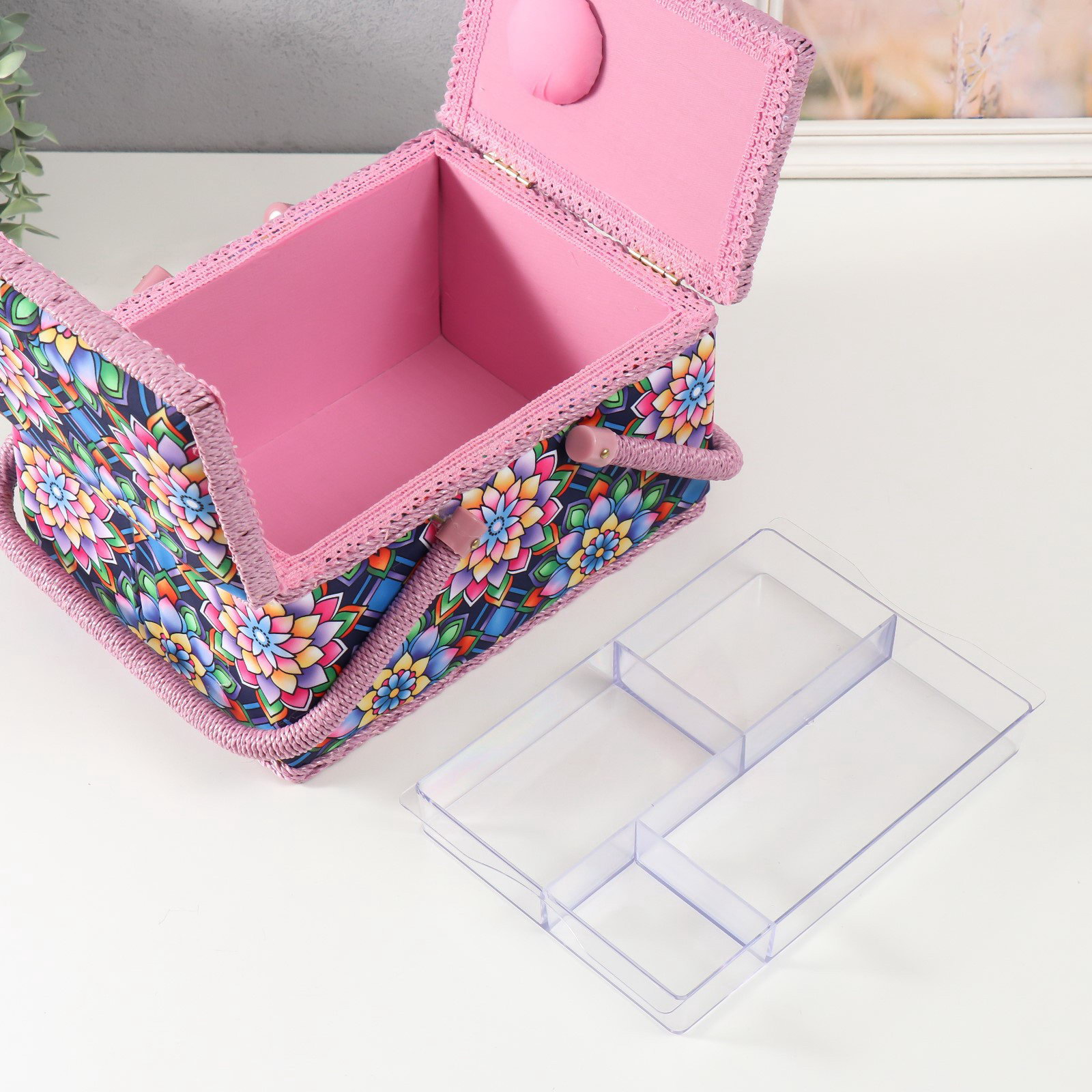 Шкатулка для рукоделия и шитья "Цветы калейдоскопа", хранение ниток, иголок, мелочи, 19х26х14.5 см, 26x19x14.5 см., Китай