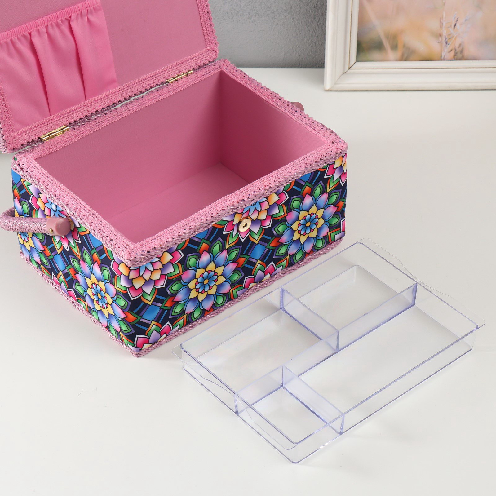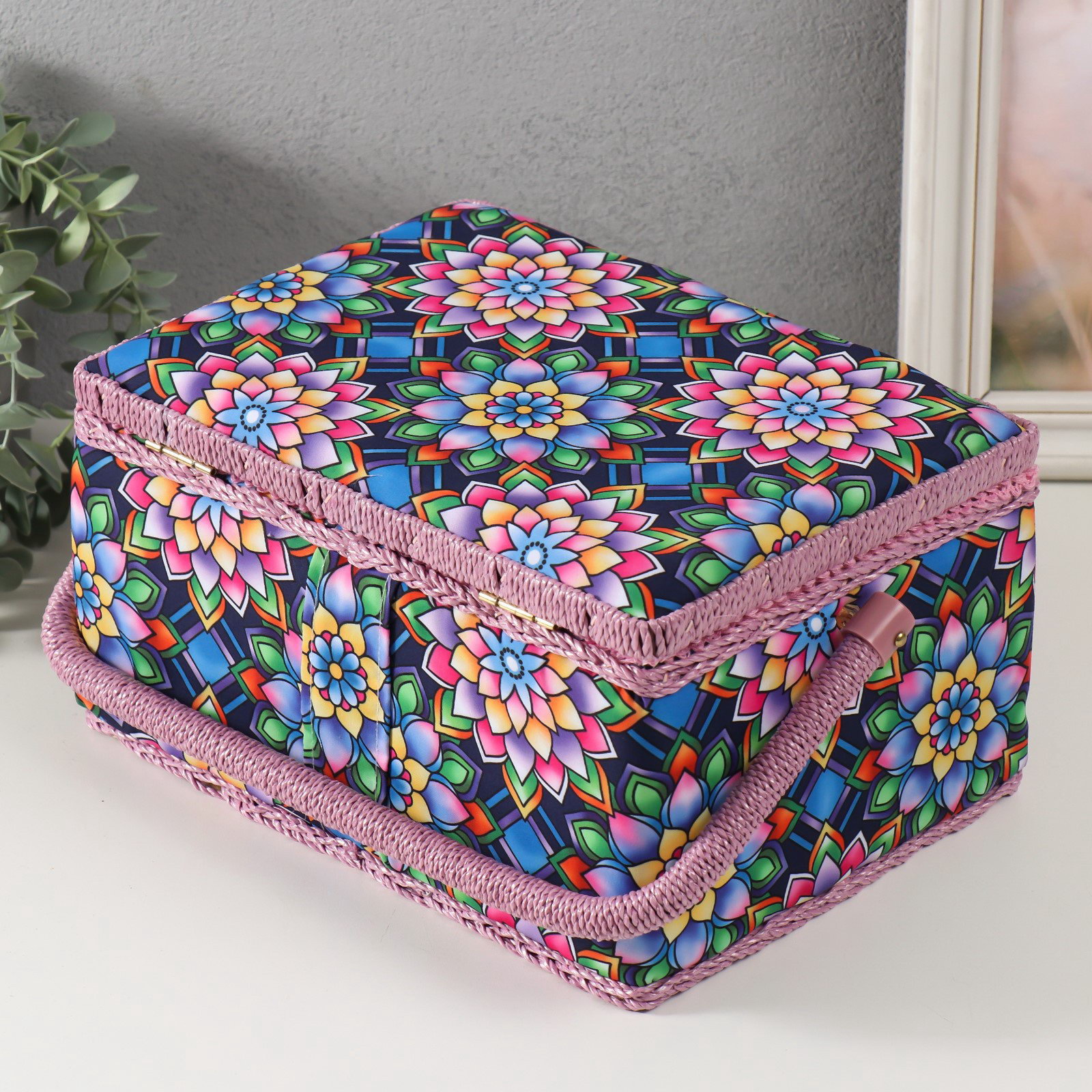 Шкатулка для рукоделия и шитья "Цветы калейдоскопа", хранение ниток, иголок, мелочи, 19х26х14.5 см, 26x19x14.5 см., Китай