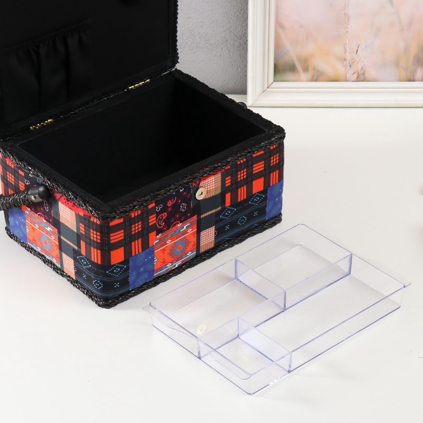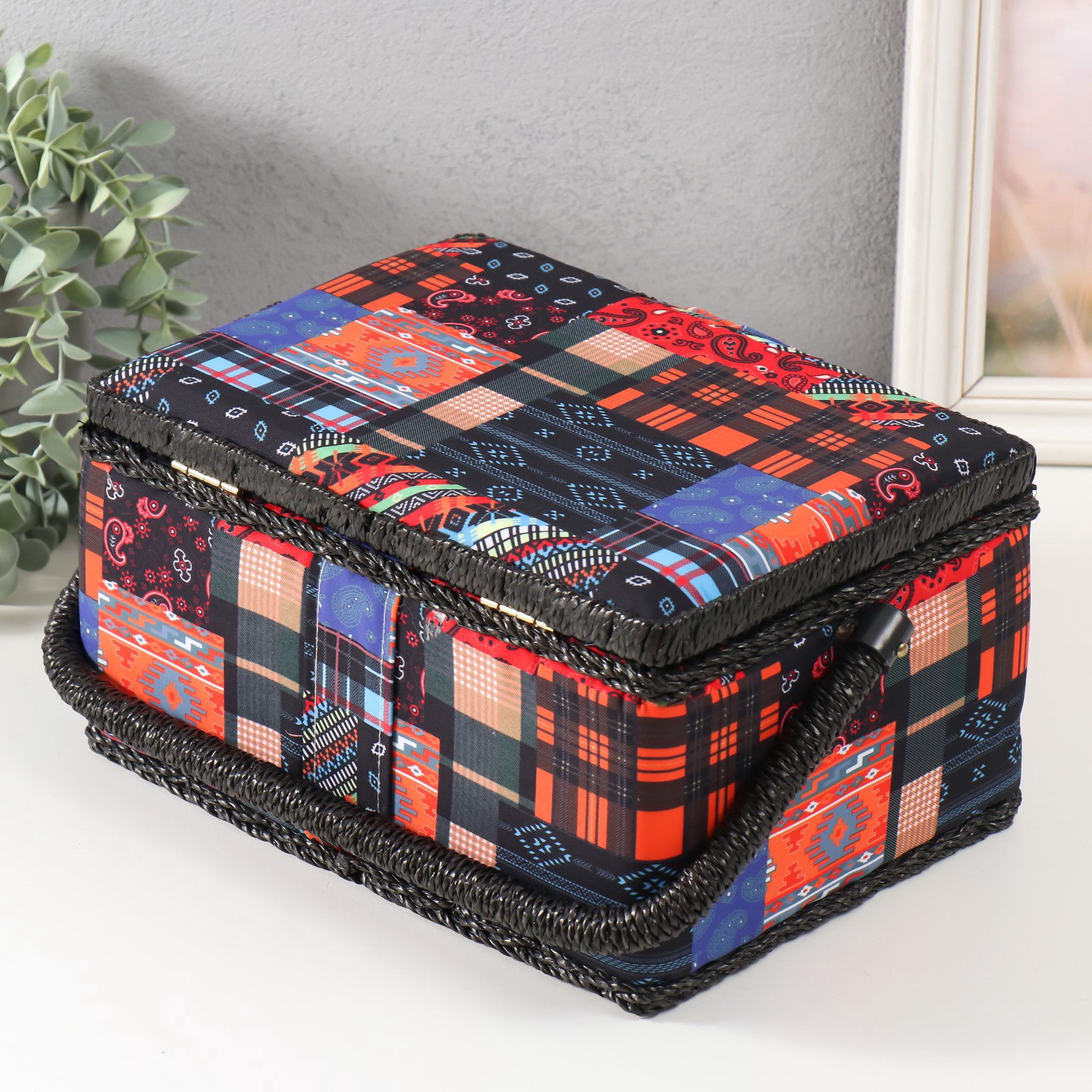 Шкатулка для рукоделия и шитья "Пэчворк. Узоры", хранение ниток, иголок, мелочи, 19х26х14.5 см, 26x19x14.5 см., Китай