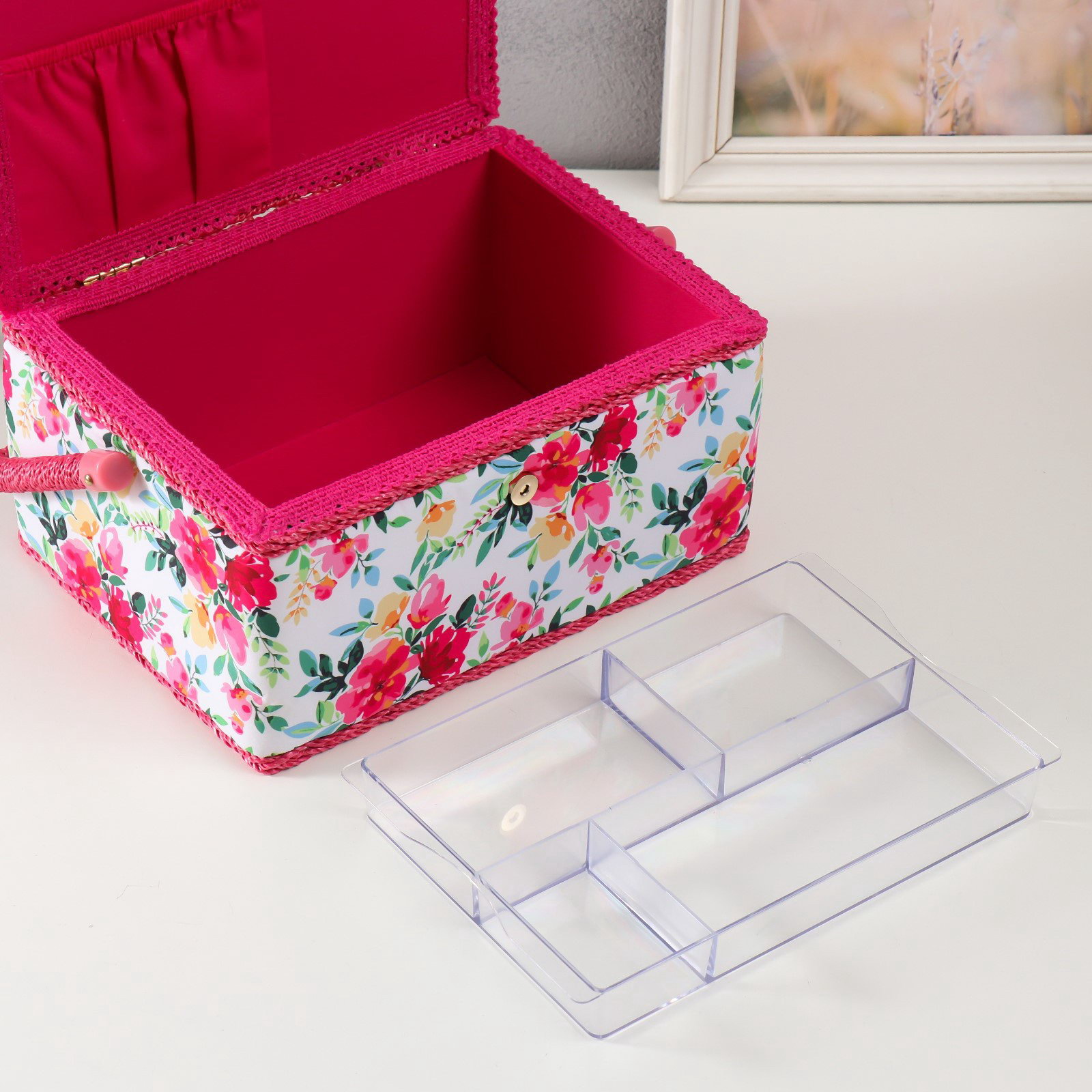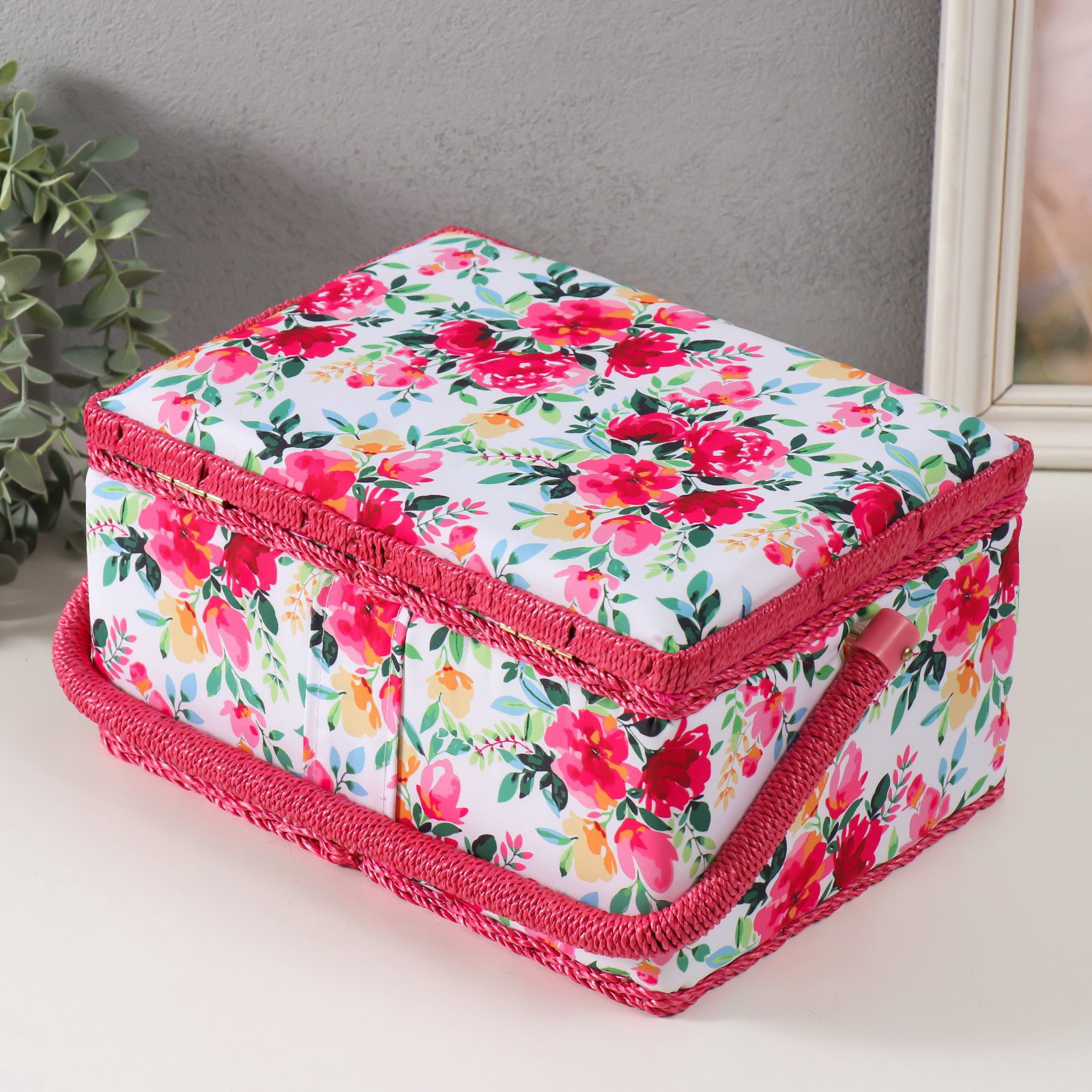 Шкатулка для рукоделия и шитья "Акварельные цветы", хранение ниток, иголок, мелочи, 19х26х14.5 см, 26x19x14.5 см., Китай
