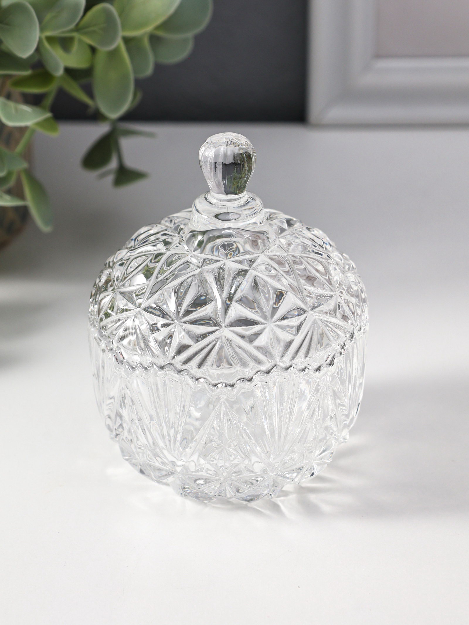 Шкатулка стекло "Вспышка" прозрачная 6.8х6.8х9 см, 6.8x6.8x9 см., Китай
