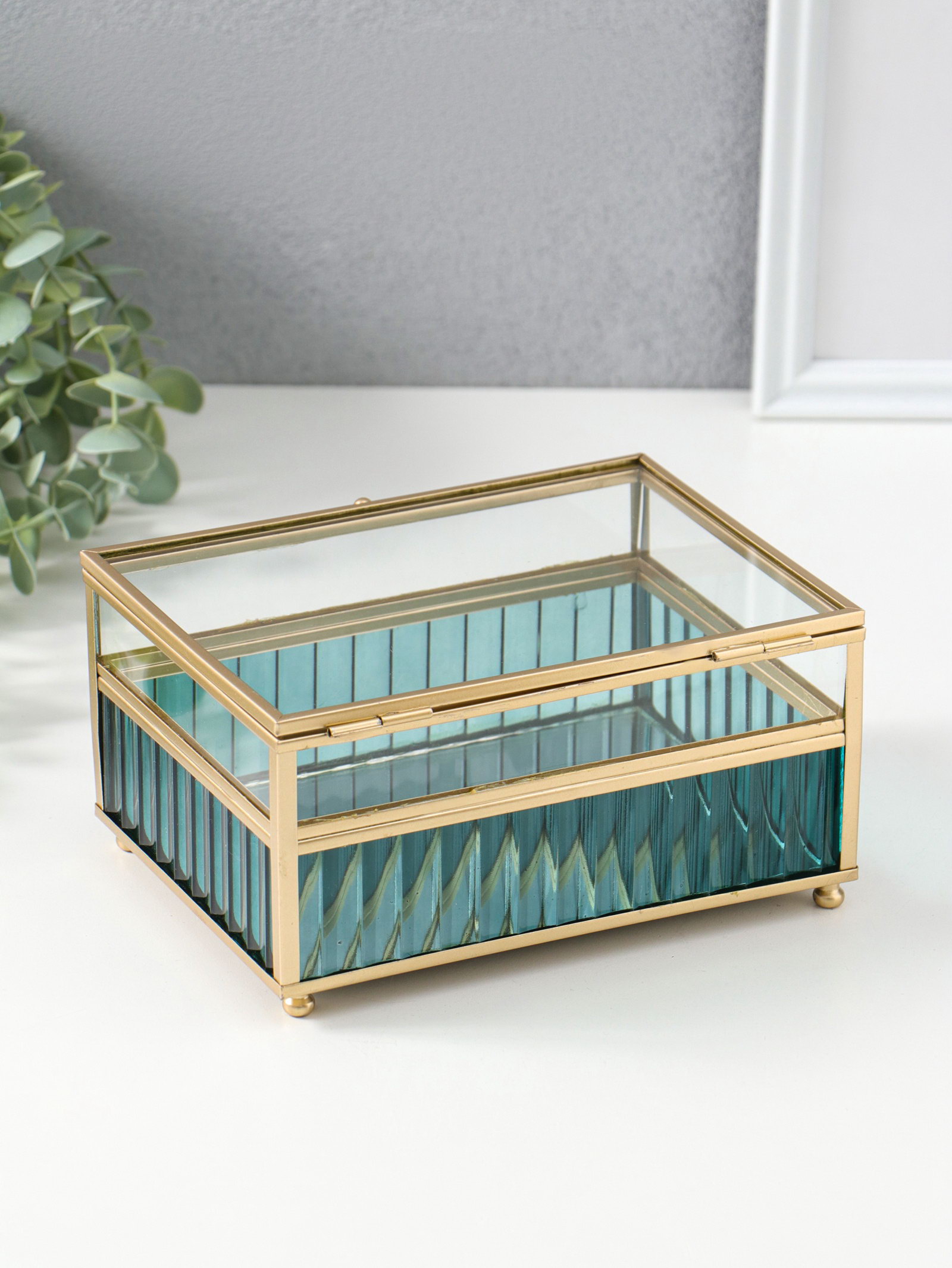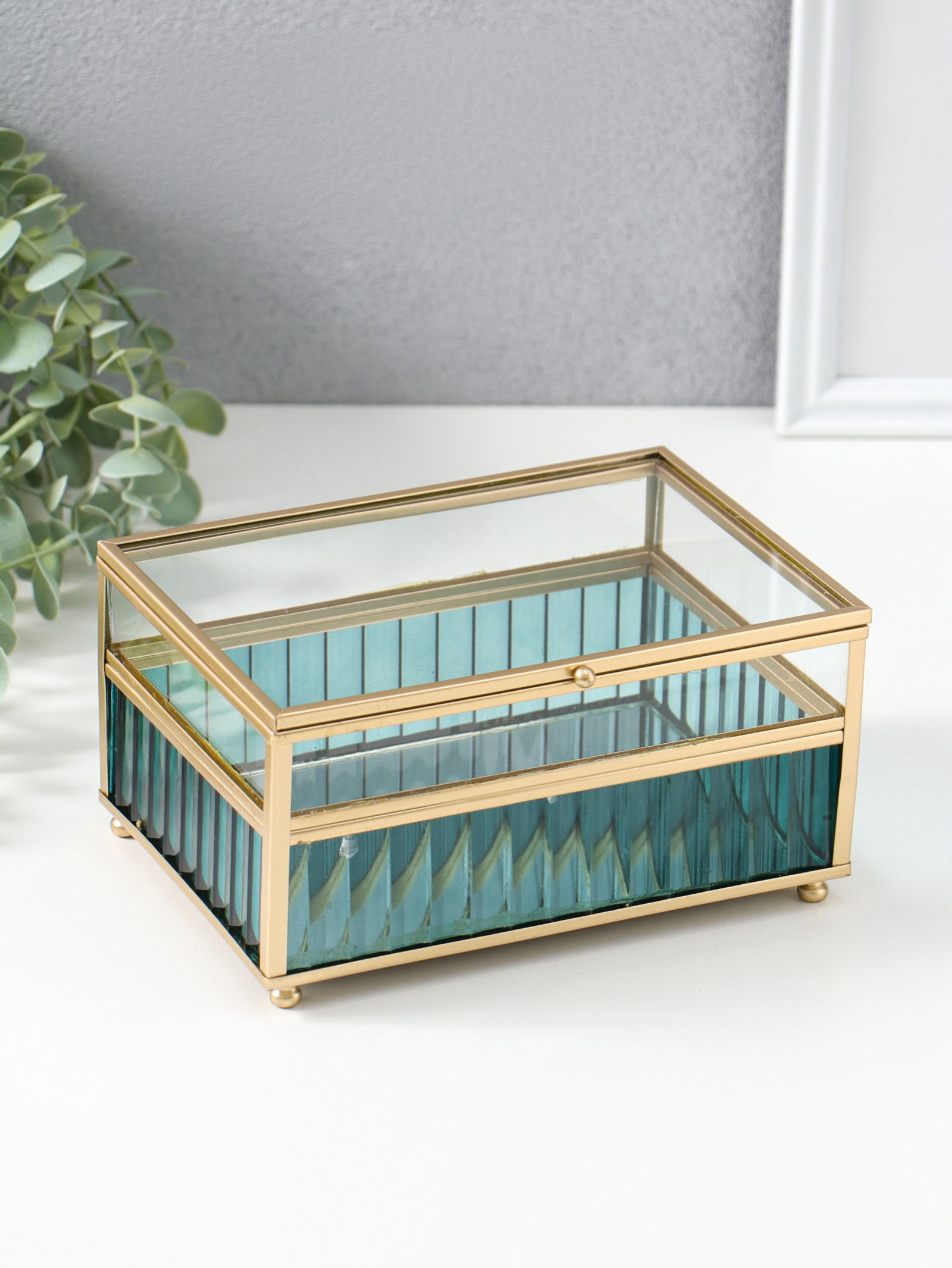 Тематика праздника: 8 Марта, Универсальная тематика Особенности шкатулки: Для косметики, Для украшений Размер упаковки: 11.5 x 19 x 16 см. tnved: 7013990000 Длина, см: 18 Форма: Прямоугольная Высота, см: 9.5 Цвет: Голубой Тематика: Текстура Ширина, см: 14 Эта стеклянная шкатулка с голубым отливом и графичным металлическим каркасом элегантное решение для хранения ваших ценностей. Четкие линии по нижнему краю создают современный акцент, делая её не просто ёмкостью, а стильным элементом интерьера на туалетном столике или комоде. Особенности