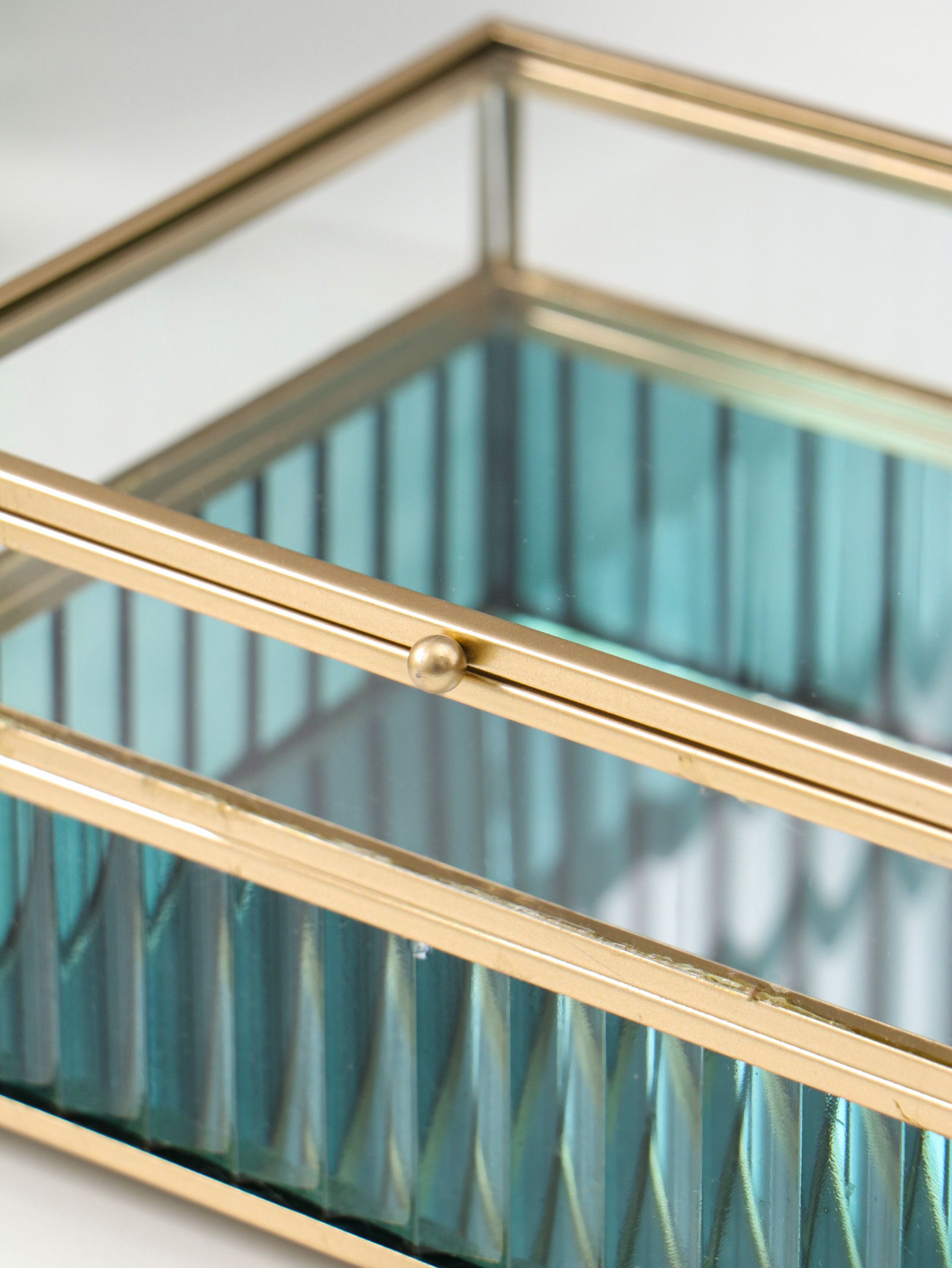 Шкатулка для украшений "Линии по низу", стекло с металлическим каркасом, голубая, 14x18x9.5 см, 18x14x9.5 см., Китай