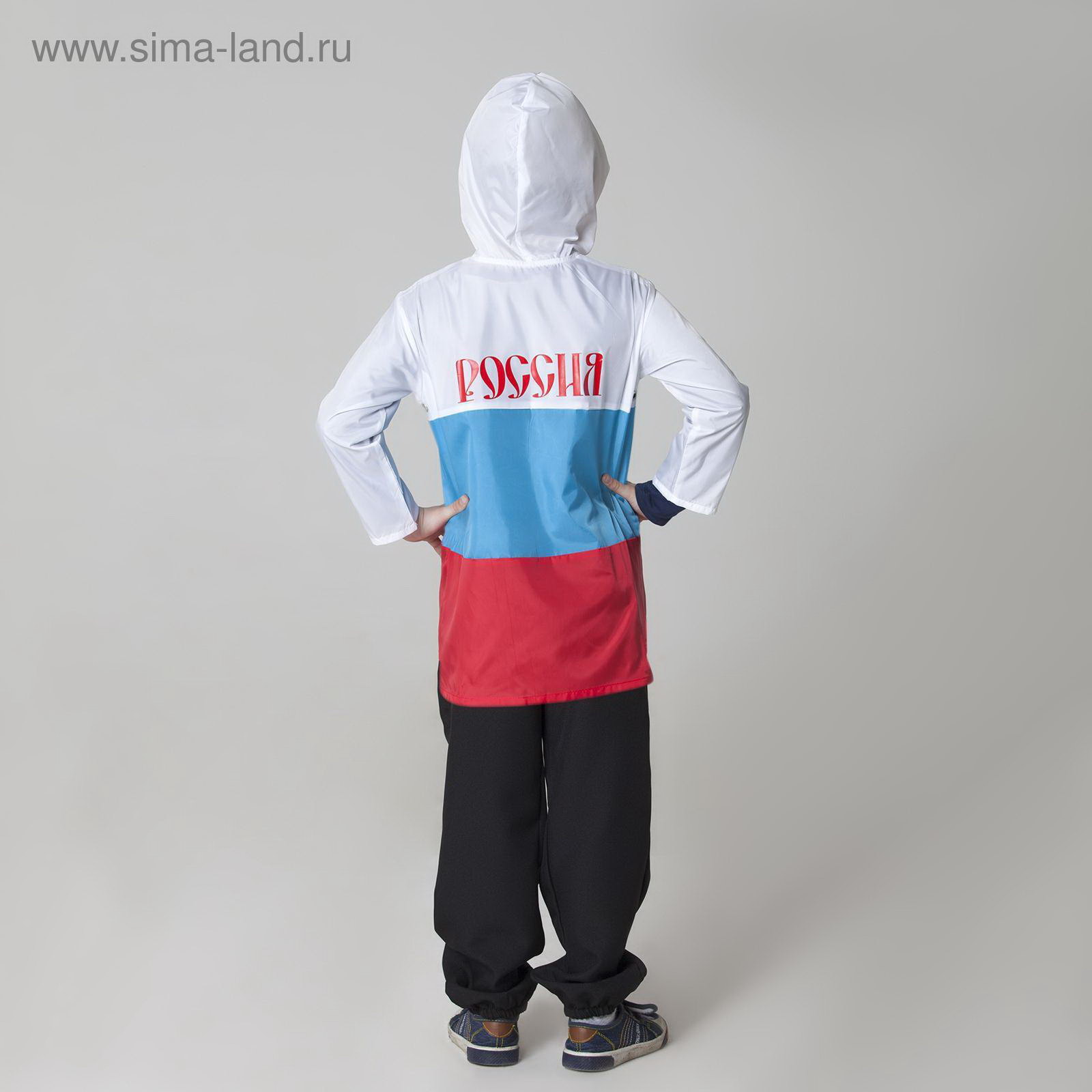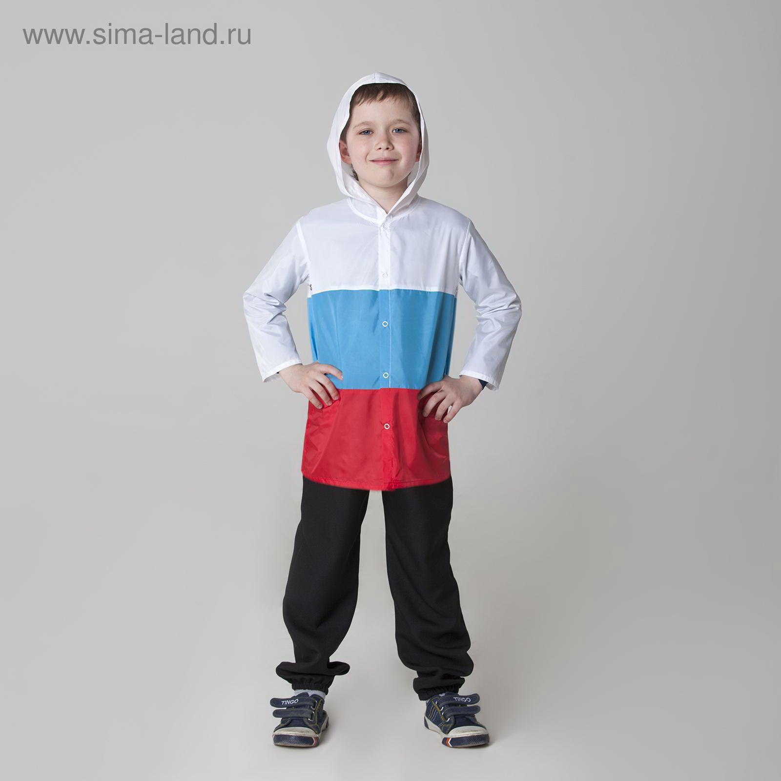 Дождевик триколор "Россия", плащевая ткань с водоотталкивающей пропиткой, уголок триколор, рост 146-152 см, Страна Карнавалия, Россия