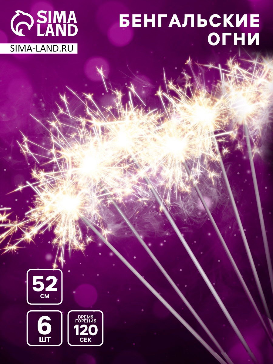 Бенгальские огни золотые "Бенгальский тигр", 6 шт., 52 см, горение 120 сек., Китай