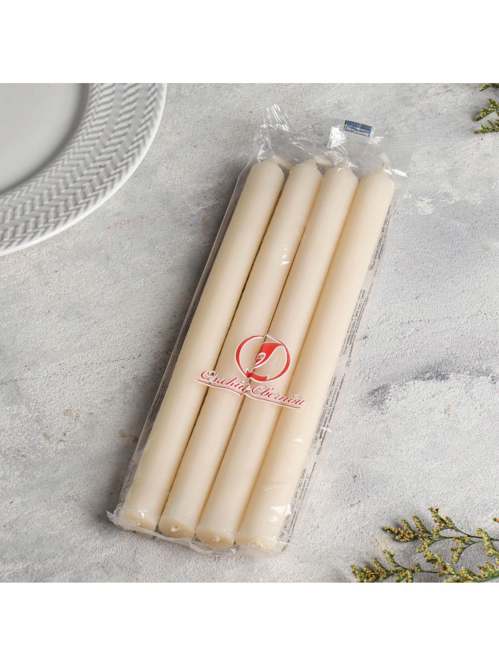 Размер упаковки: 26 x 2 x 8 см. Высота свечи, см: 25 Состав: Парафин Цвет: Бежевый tnved: 3406000000 Ароматизированные: Нет В наборе, шт.: 4 Время горения, ч: 9 В вашем доме появился новый источник уюта и надёжности комплект из четырёх парафиновых свечей, которые станут верными спутниками в создании атмосферы тепла и комфорта. Их классический дизайн и безупречное качество делают их универсальным решением для самых разных ситуаций: от романтического ужина до внезапного отключения электричества. Каждая свеча обладает выверенными параметрами: диаметром 1,9 см, высотой 24,5 см и массой 65 граммов. Благодаря этому они хорошо держатся в подсвечникеи гарантируют стабильное горение на протяжении 9 часов. Восковой состав из высококачественного парафина обеспечивает равномерное сгорание без копоти и неприятного запаха.