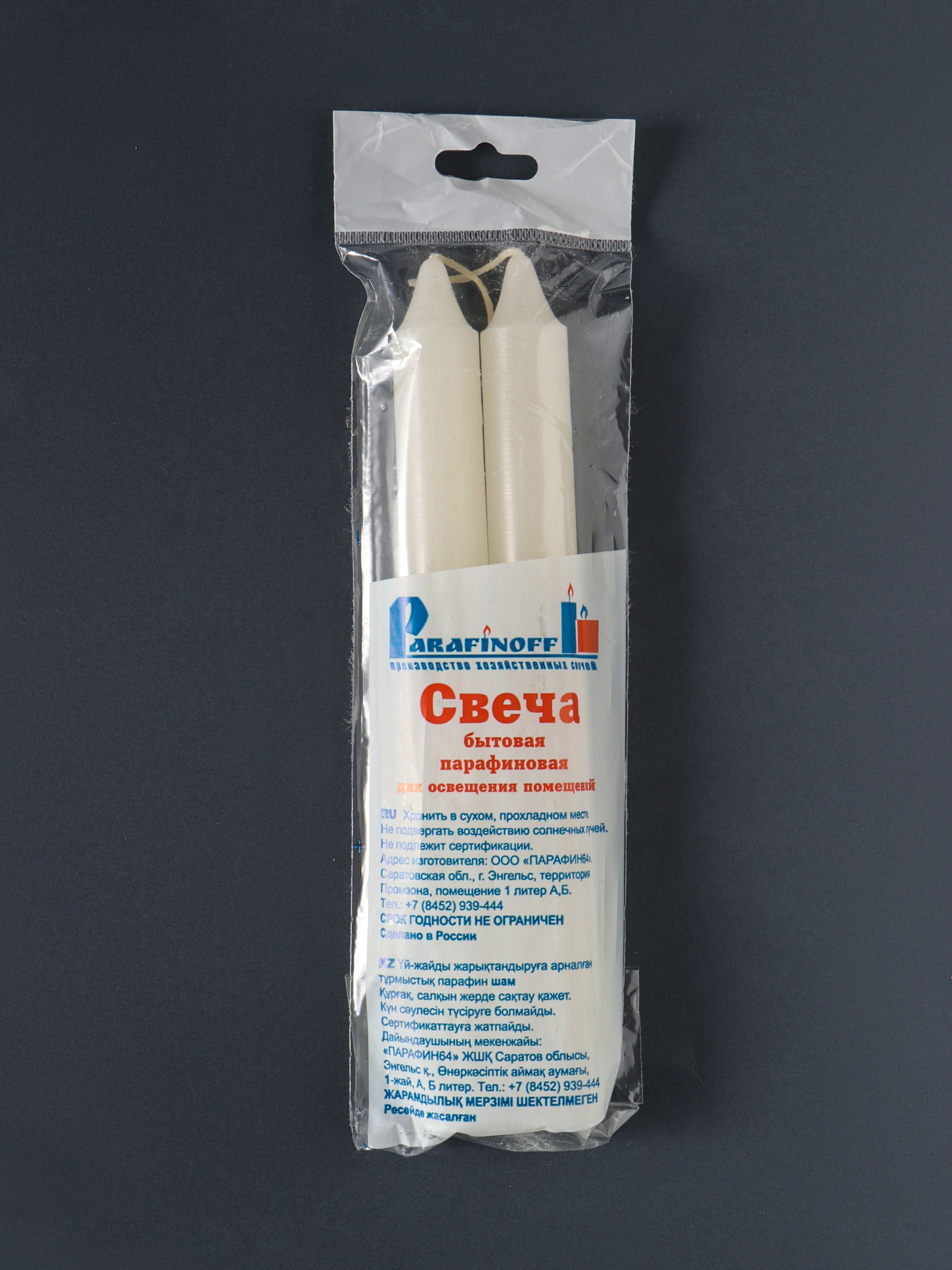 Размер упаковки: 2.1 x 20 x 4.3 см. tnved: 3406000000 Температурное ограничение: Нет Состав: Парафин Высота свечи, см: 20 В наборе, шт.: 2 Ароматизированные: Нет Этот набор из двух высоких хозяйственных свечей надёжный резерв для дома. Две свечи по 60 грамм каждая горят до девяти часов, создавая долгий, устойчивый свет. Их классический парафиновый состав обеспечивает ровное пламя без копоти и резкого запаха, поэтому они подходят даже для чувствительного восприятия. Особенности