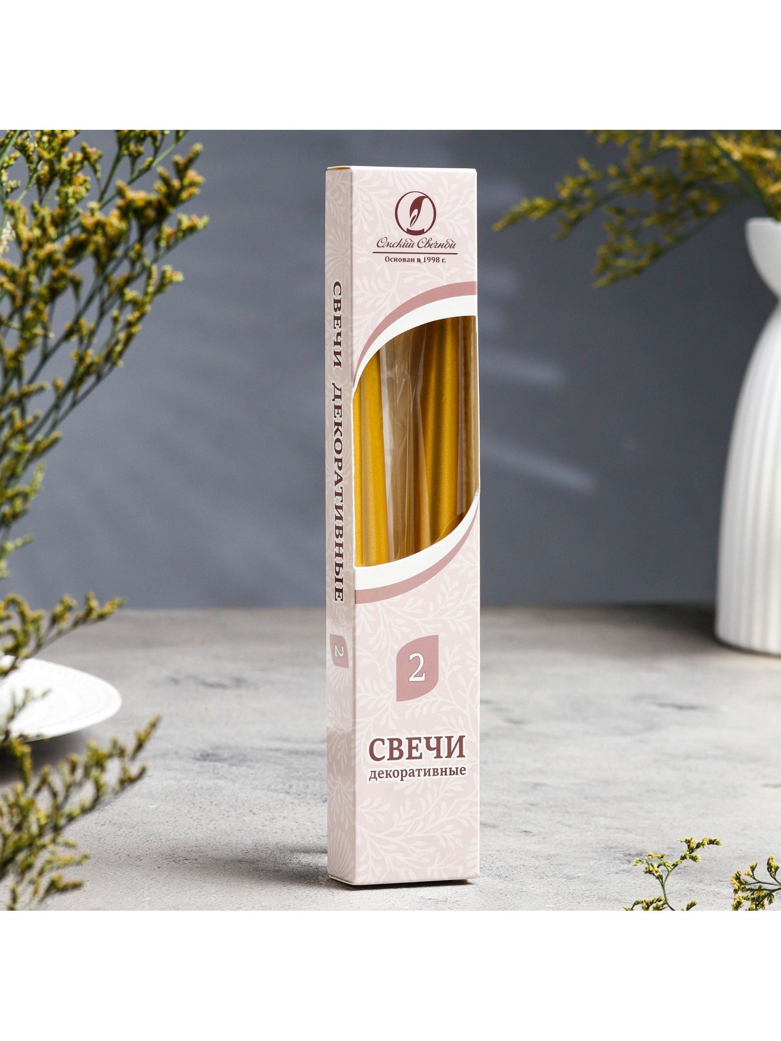 Набор свечей античных, 2.3x24.5 см, 5 ч, 55 г, 2 шт., золотой, 2.3х2.3х2.3 см., Омский свечной завод, Россия