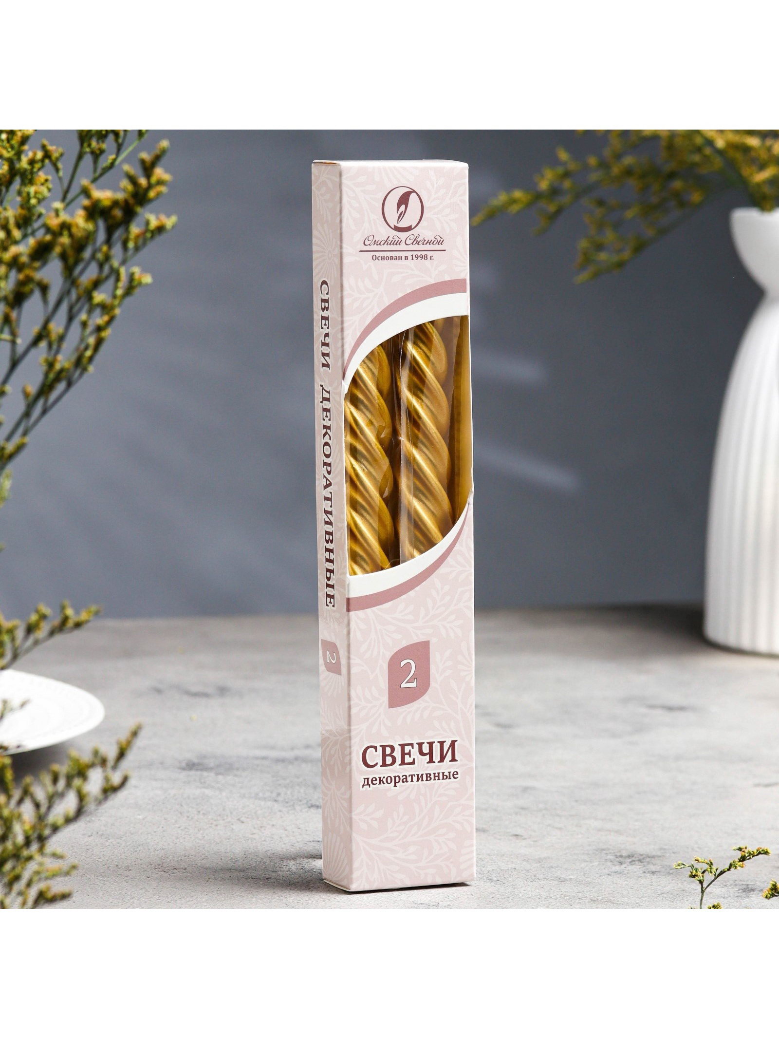 Набор свечей витых, 2.3x24.5 см, 5 ч, 50 г, 2 шт., золотой, 2.3х2.3х2.3 см., Омский свечной завод, Россия