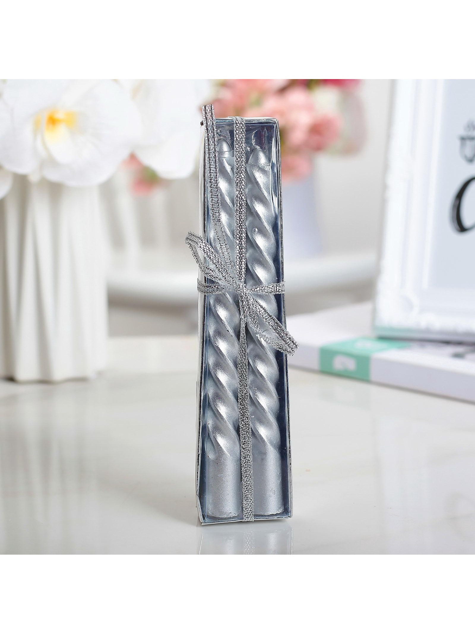 Набор свечей витых, 1.5x15 см, 2 шт., серебряный металлик, 1.5х1.5х15.5 см., Дарим Красиво, Китай