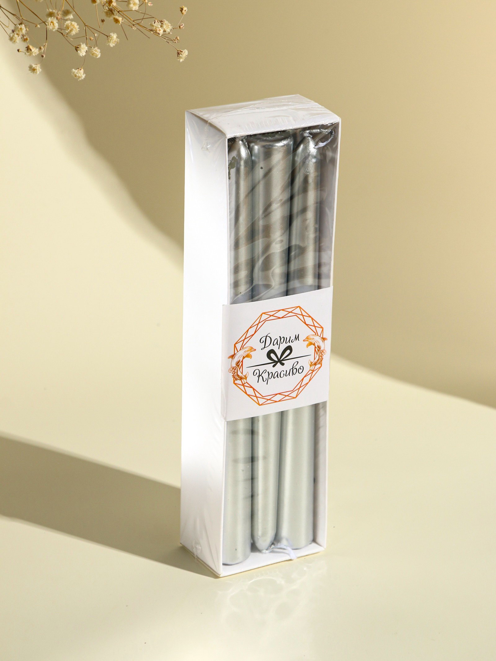 Тематика праздника: Новый год, Рождество, Свадьба, Универсальная тематика Размер упаковки: 5.5 x 3.5 x 20.5 см. Цвет: Серебристый Ароматизированные: Нет Форма свечи: Коническая Высота свечи, см: 20 Время горения, ч: 5 Состав: Парафин tnved: 3406000000 tnved: 3406000000 Набор: Да Аромат: Без аромата Декоративная свеча украшение любого праздника и приятный подарок. Её огонь дарит тепло и свет, создаёт уютную атмосферу, а уникальный дизайн изделия дополнит любой интерьер. Подарите себе и своим близким немного тепла, света и радости. | ||