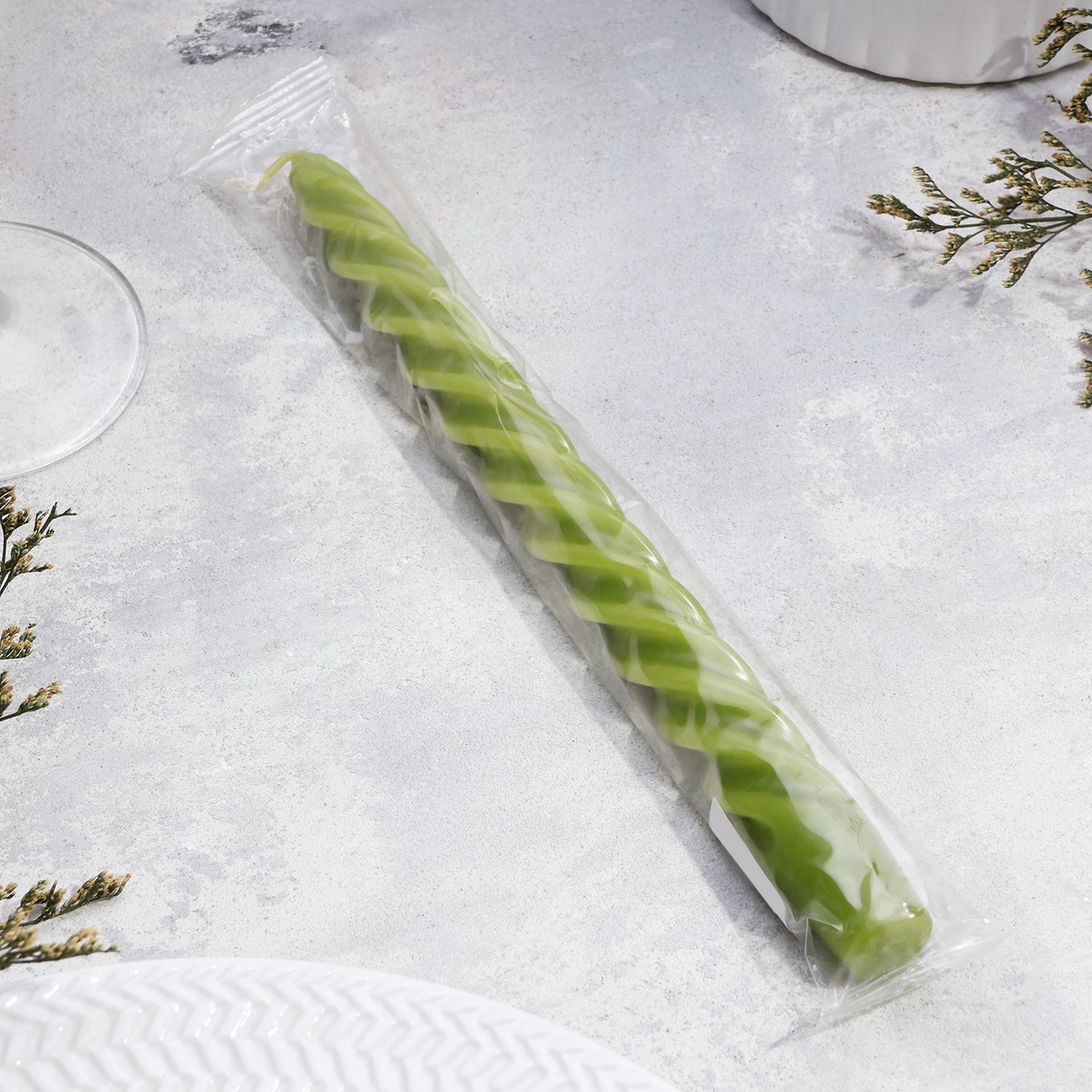 Свеча витая, 2.3x24.5 см, 5 ч, 50 г, оливковая, 2.3 см., Омский свечной завод, Россия