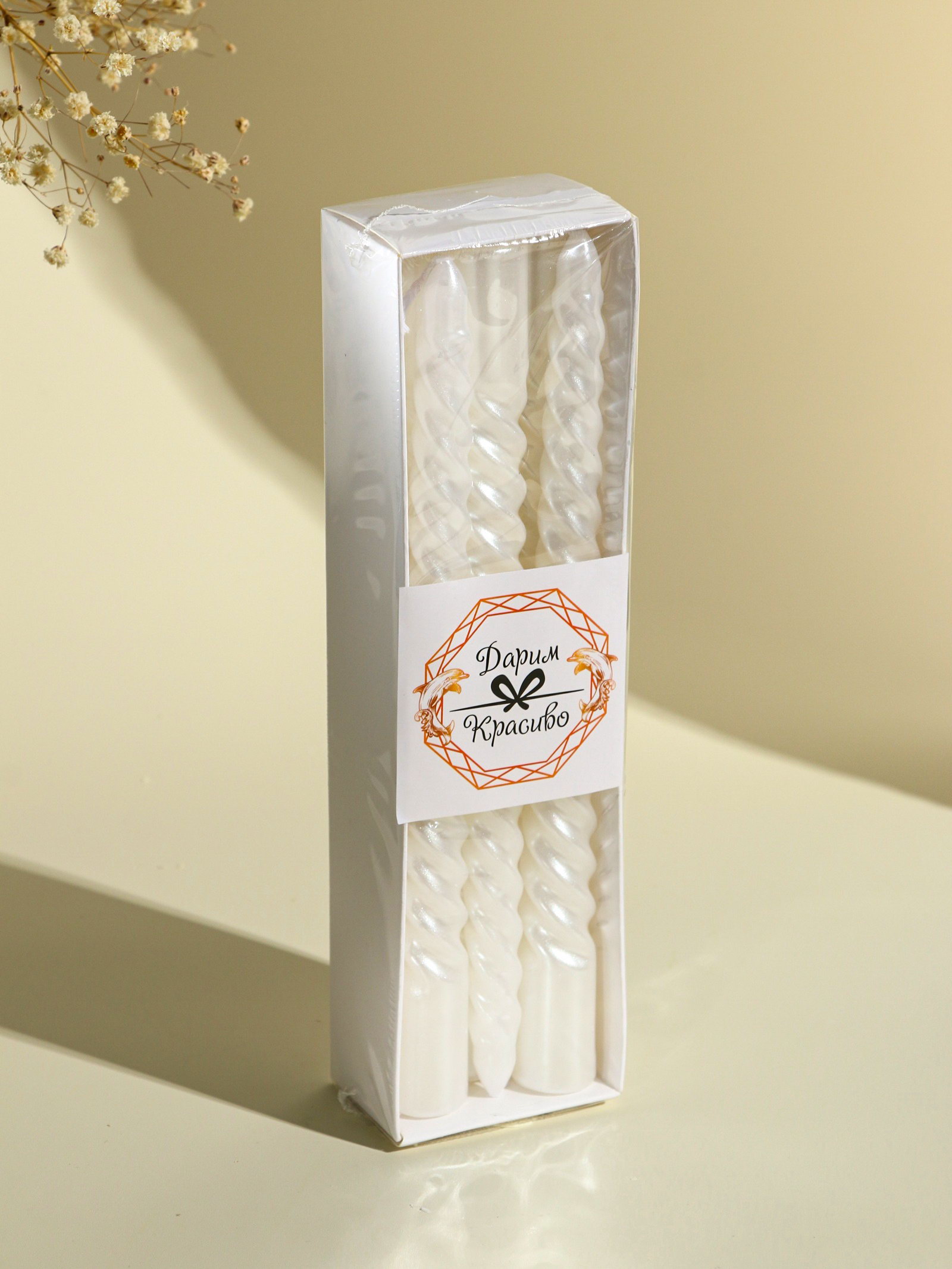 Набор свечей витых, 1.9x20 см, 6 шт., перламутровый металлик, 1.9х1.9х20 см., Богатство Аромата, Китай