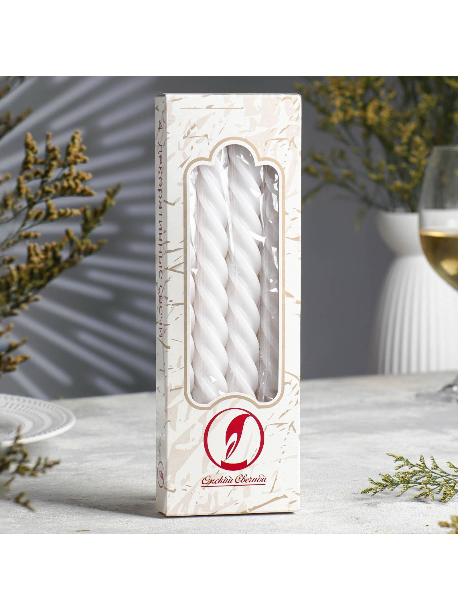 Набор свечей витых, 2.3x24.5 см, 5 ч, 50 г, 4 шт., белый, 2.3х2.3х2.3 см., Омский свечной завод, Россия