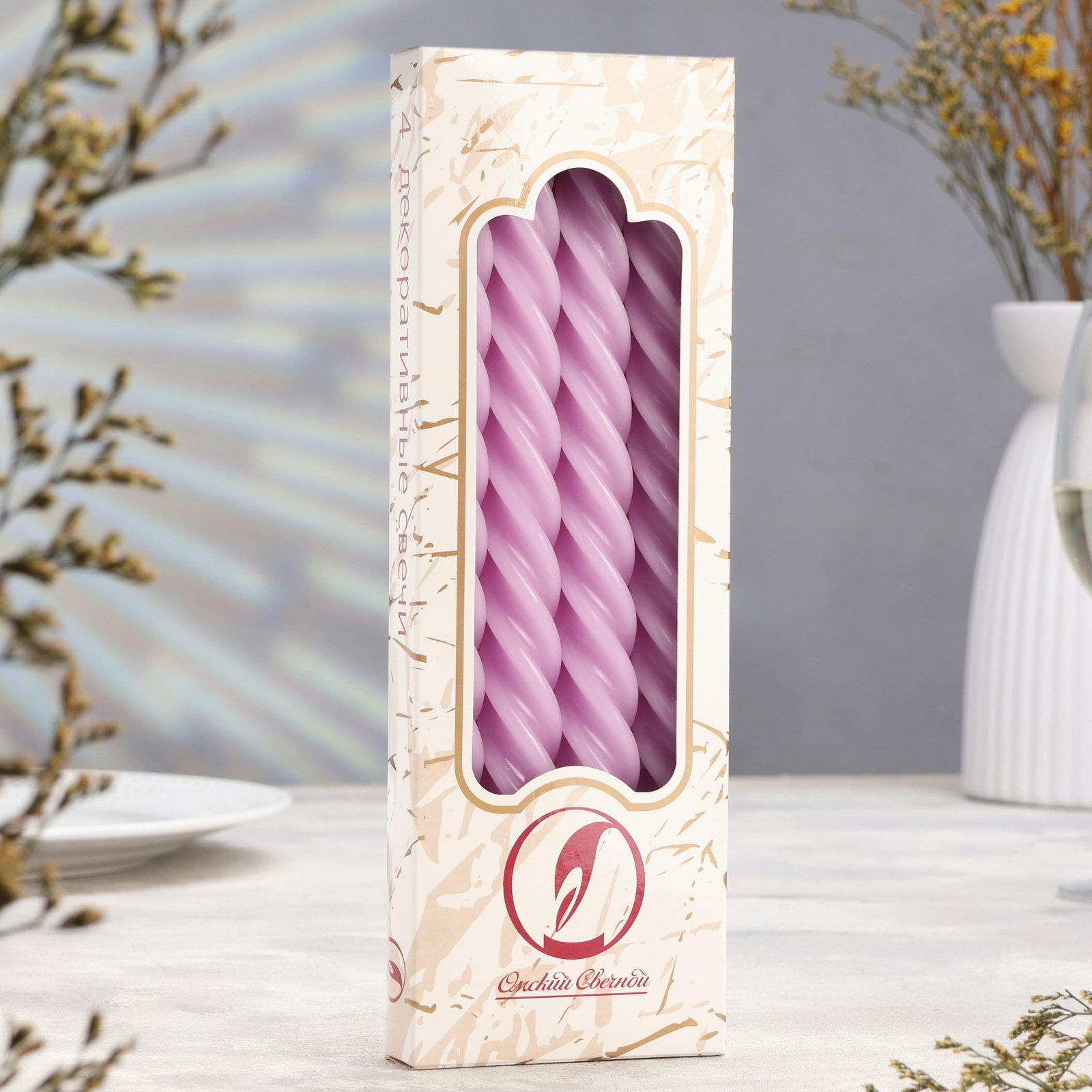 Набор свечей витых, 2.3x24.5 см, 5 ч, 50 г, 4 шт., сиреневый, 2.3 см., Омский свечной завод, Россия