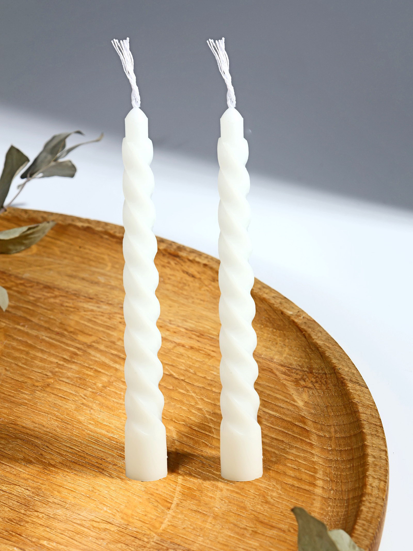 Набор свечей витых, 1.5x15 см, 2 шт., белый, 1.5 см., Дарим Красиво, Китай