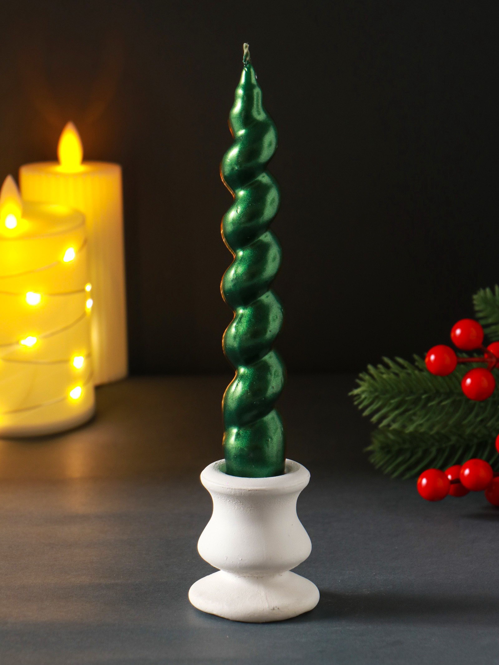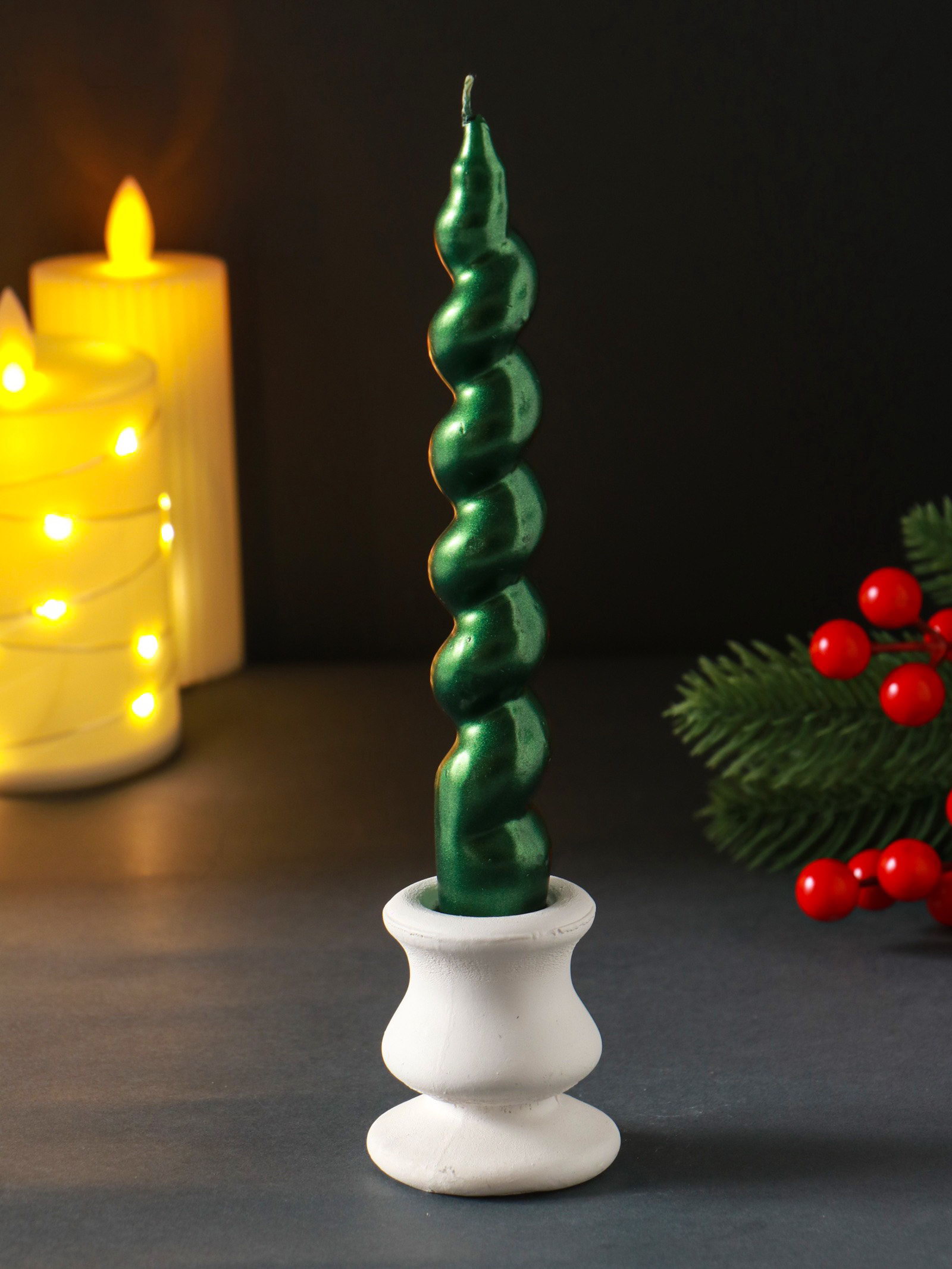 Свеча витая Luxury, 25x180 мм, лакированная, зелёная, 2.5 см., Россия