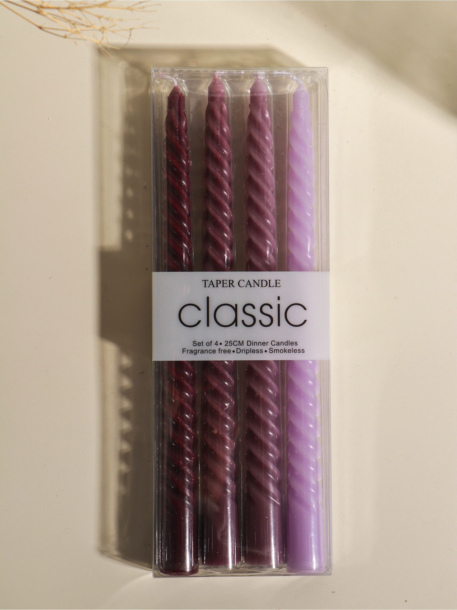 Набор свечей витых, 2x25 см, 4 шт., палитра бордового, 25.5x8.8x2.4 см, 2х2х2.4 см., Китай