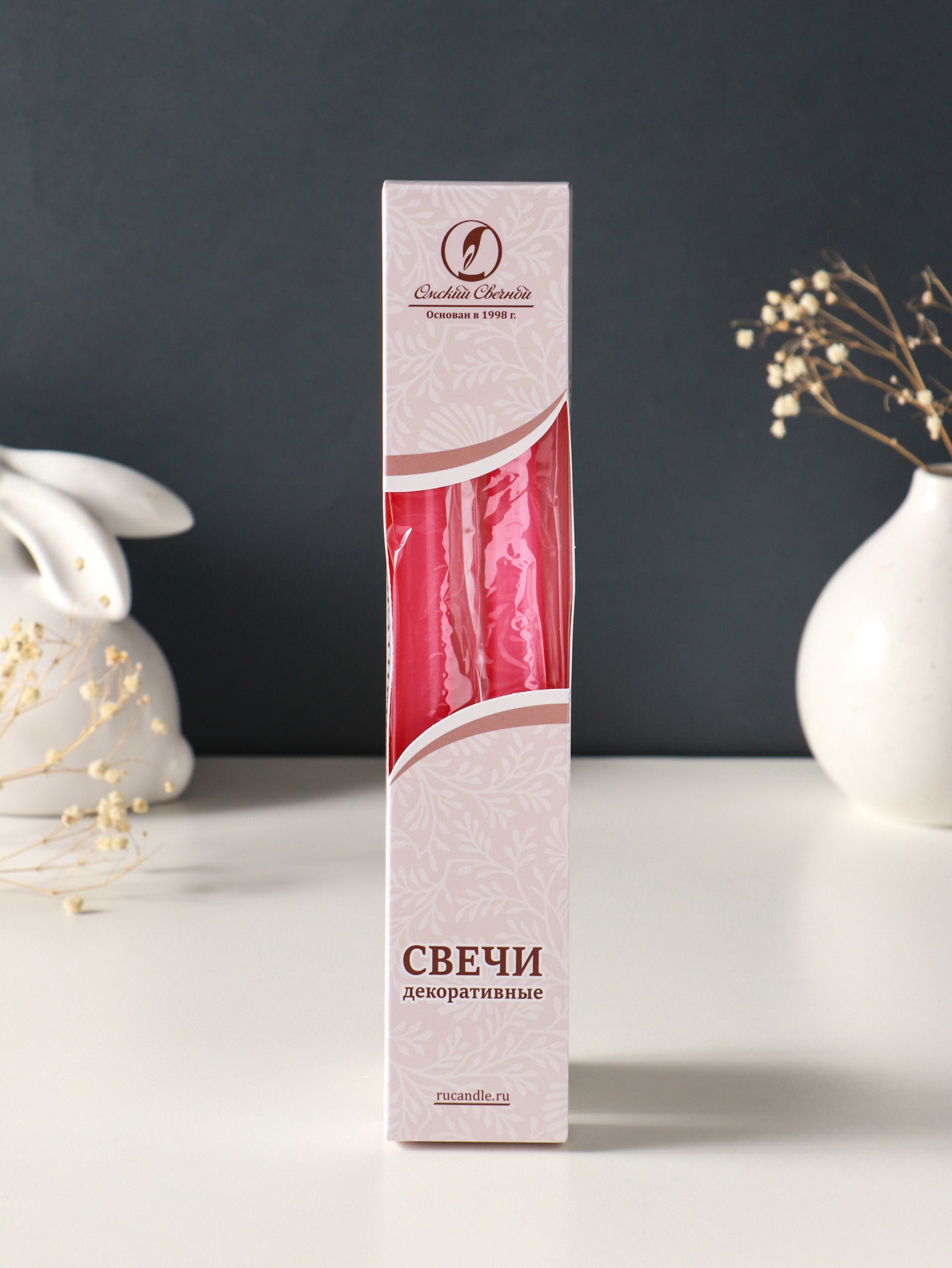 Набор свечей античных, 2.3x24.5 см, 5 ч, 55 г, 2 шт., тёмно-розовый, 2.3 см., Омский свечной завод, Россия