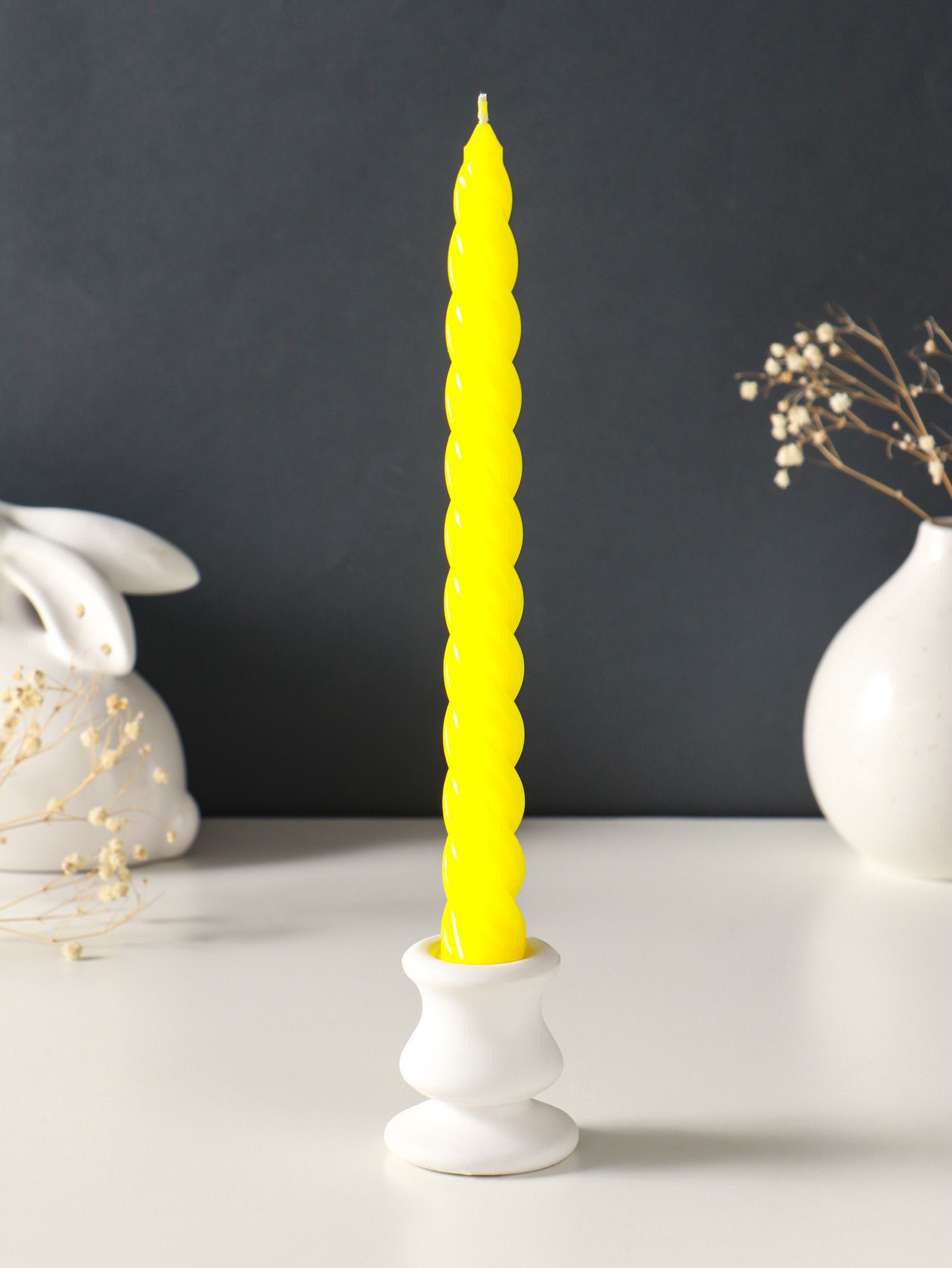 Размер упаковки: 5 x 2.3 x 25 см. tnved: 3406000000 Температурное ограничение: Нет Ароматизированные: Нет Время горения, ч: 5 Аромат: Без аромата Высота свечи, см: 24.5 Состав: Парафин В наборе, шт.: 2 Форма свечи: Витая Цвет: Жёлтый Набор: Да Тематика праздника: Универсальная тематика Этот набор из двух высоких витых свечей создаёт атмосферу уюта и торжества. Гладкие спирали парафина цвета солнечного света горят ровно и долго, наполняя пространство тёплым, живым светом. Универсальный жёлтый оттенок и классическая форма делают их идеальным элементом декора для любого повода от романтического ужина до праздничного застолья. Особенности