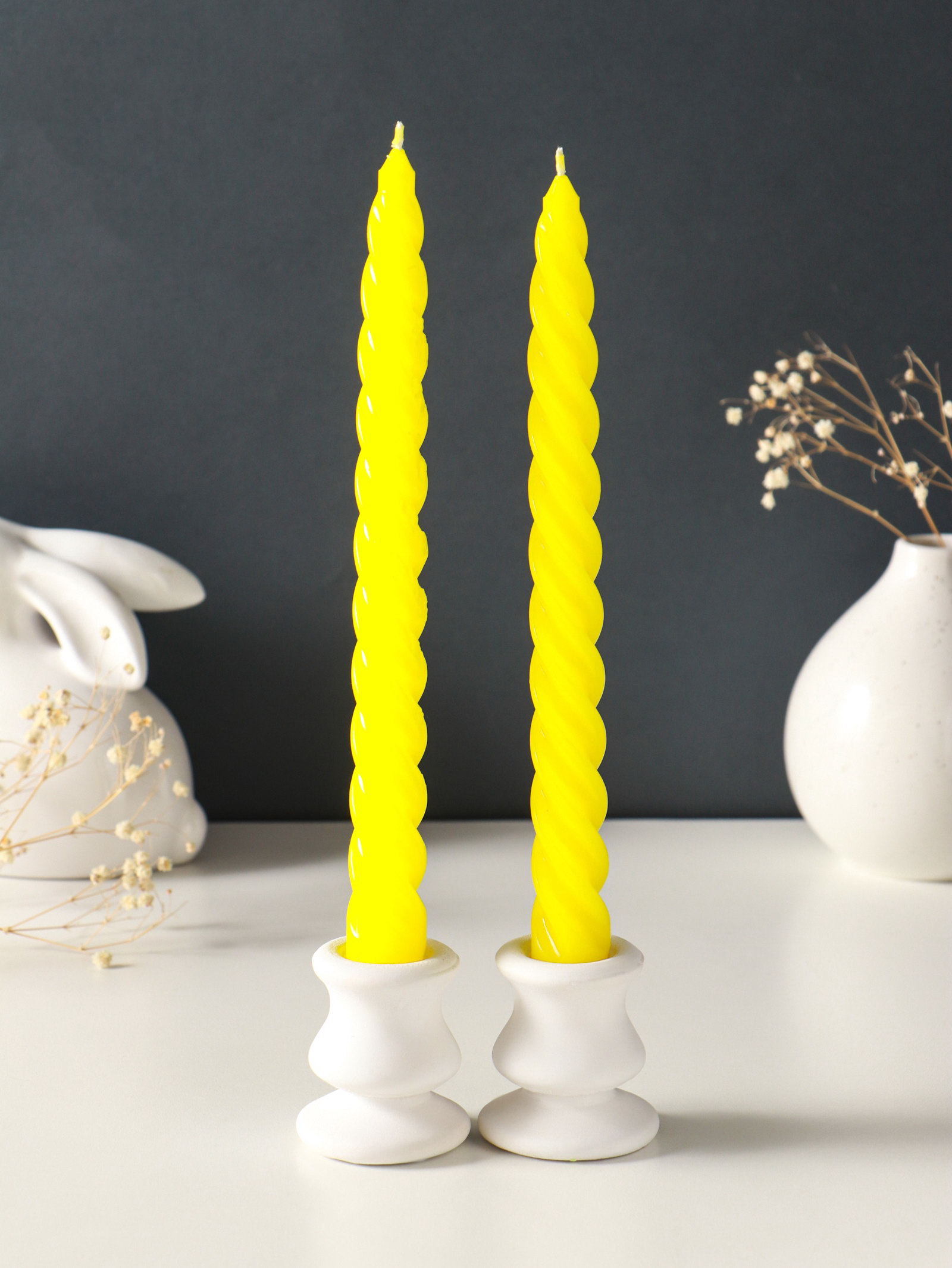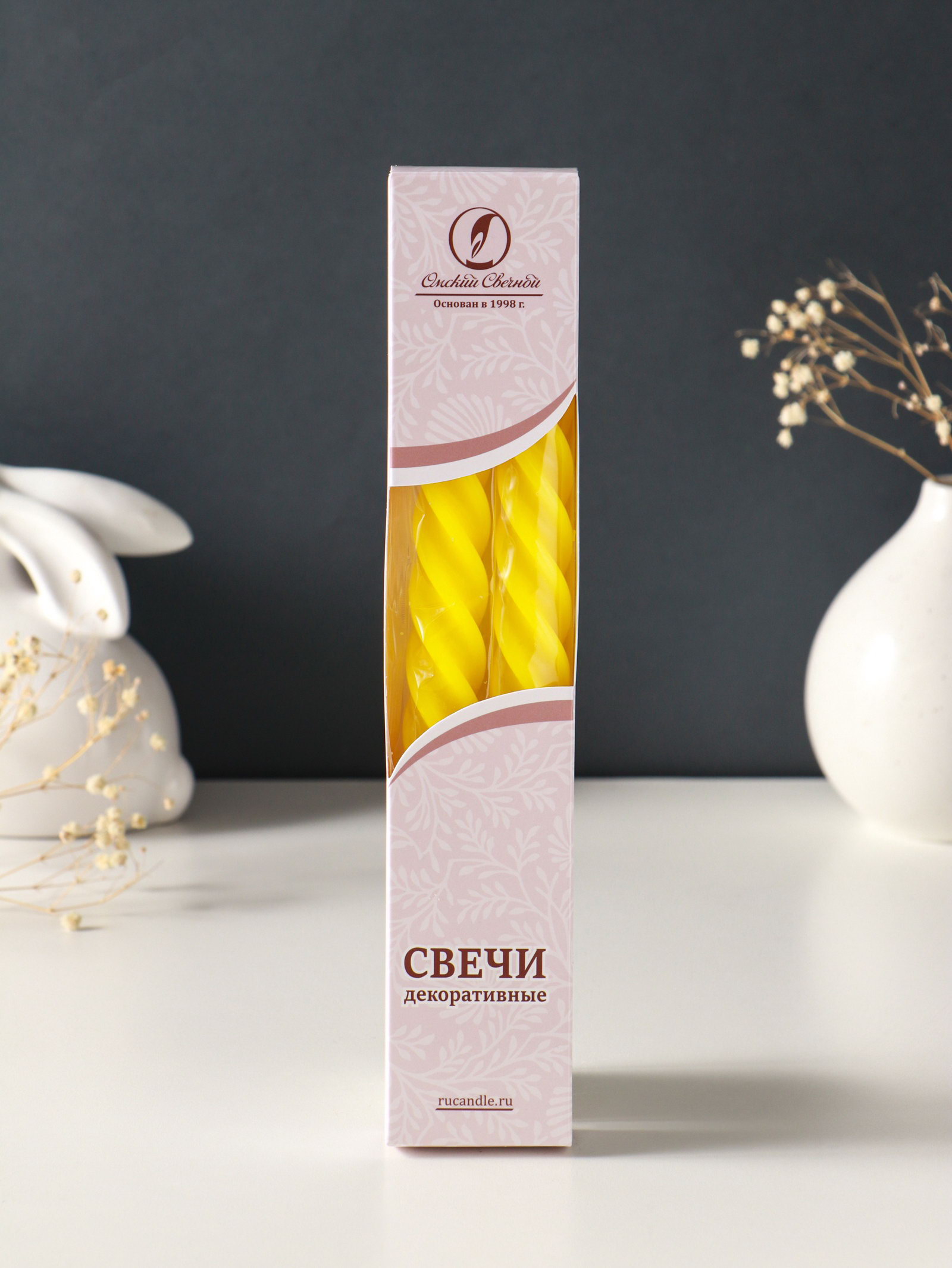 Набор свечей витых, 2.3x24.5 см, 5 ч, 50 г, 2 шт., жёлтый, 2.3 см., Омский свечной завод, Россия