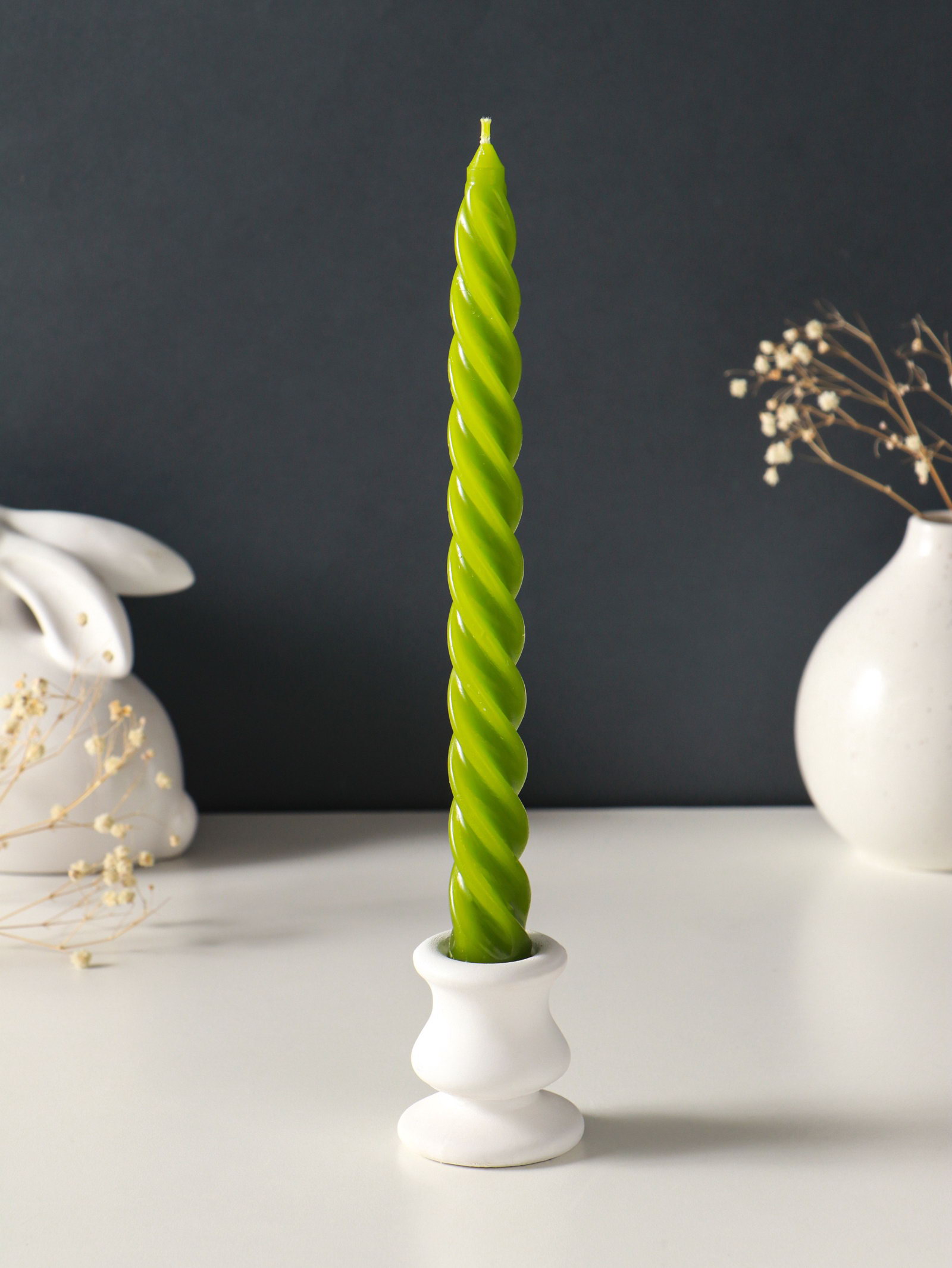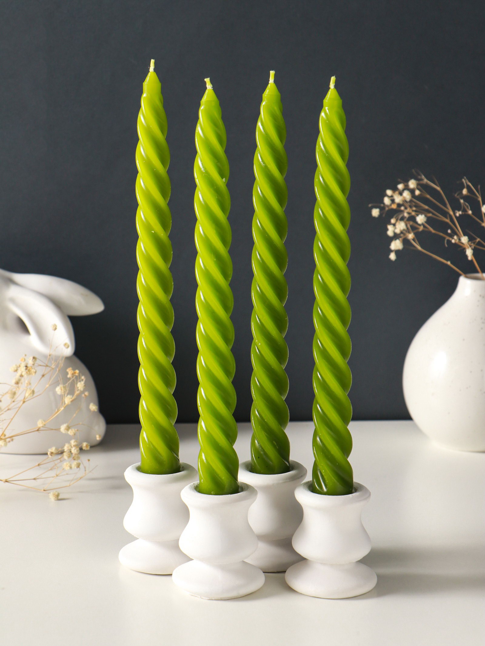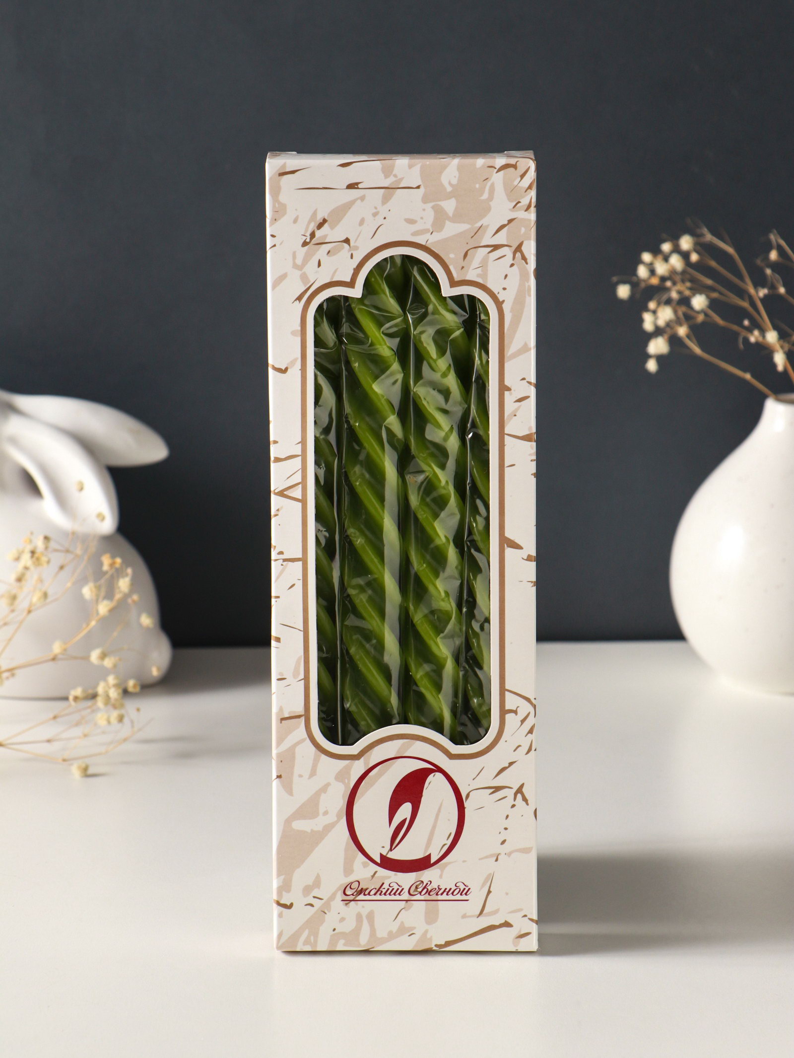Набор свечей витых, 2.3x24.5 см, 5 ч, 50 г, 4 шт., оливковый, 2.3 см., Омский свечной завод, Россия