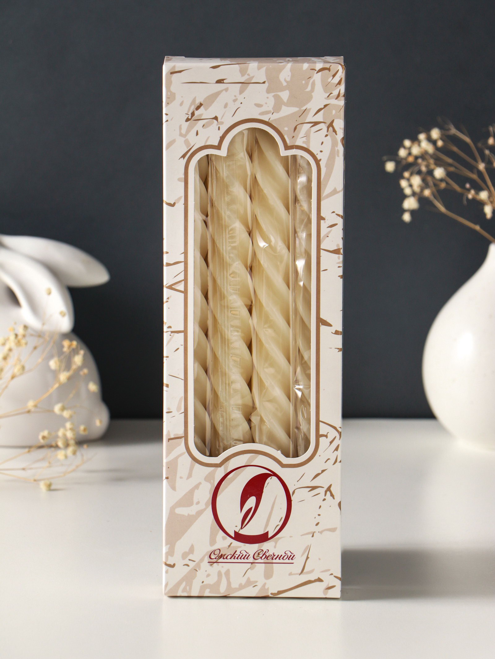 Набор свечей витых, 2.3x24.5 см, 5 ч, 50 г, 4 шт., слоновая кость, 2.3 см., Омский свечной завод, Россия