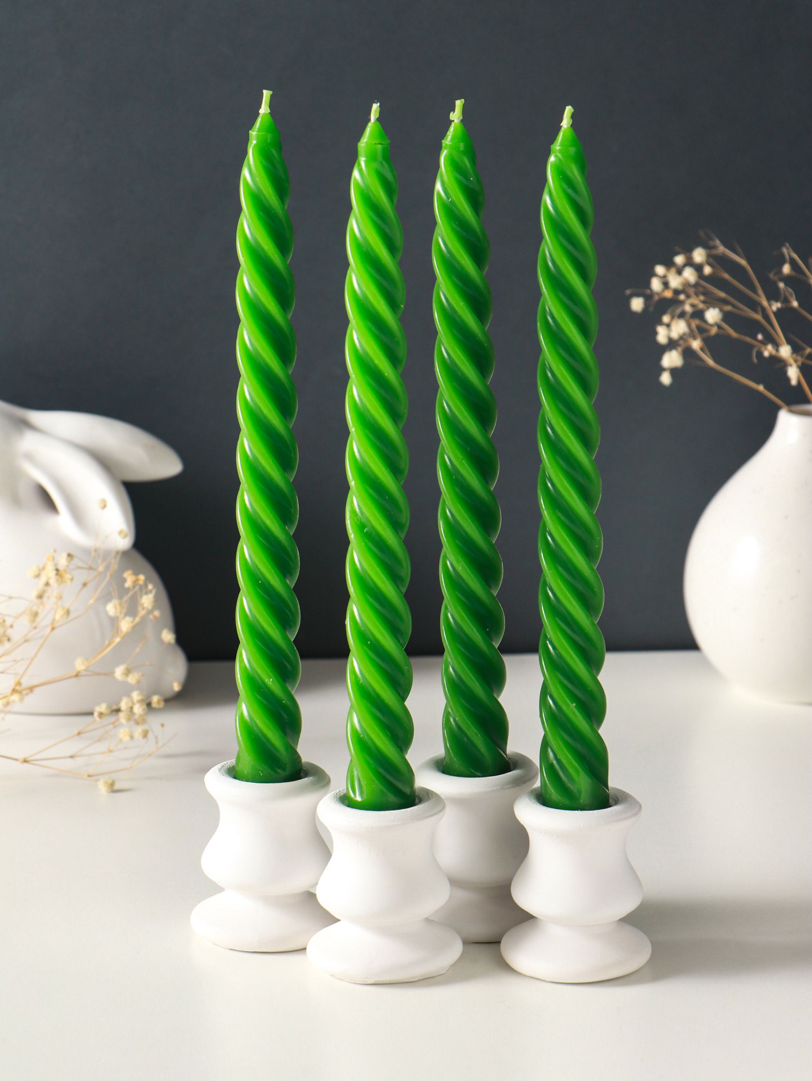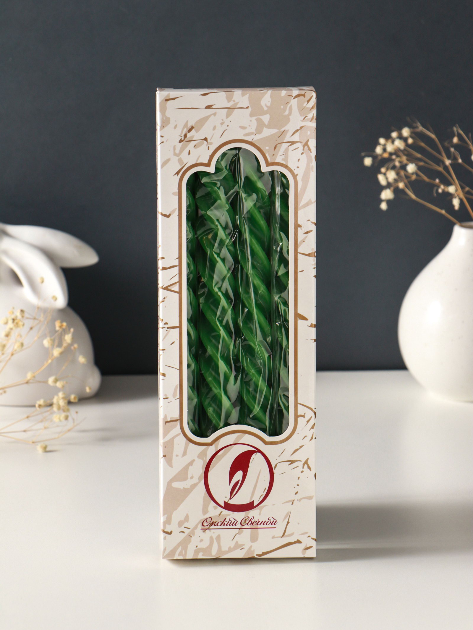 Набор свечей витых, 2.3x24.5 см, 5 ч, 50 г, 4 шт., тёмно-зелёный, 2.3 см., Омский свечной завод, Россия