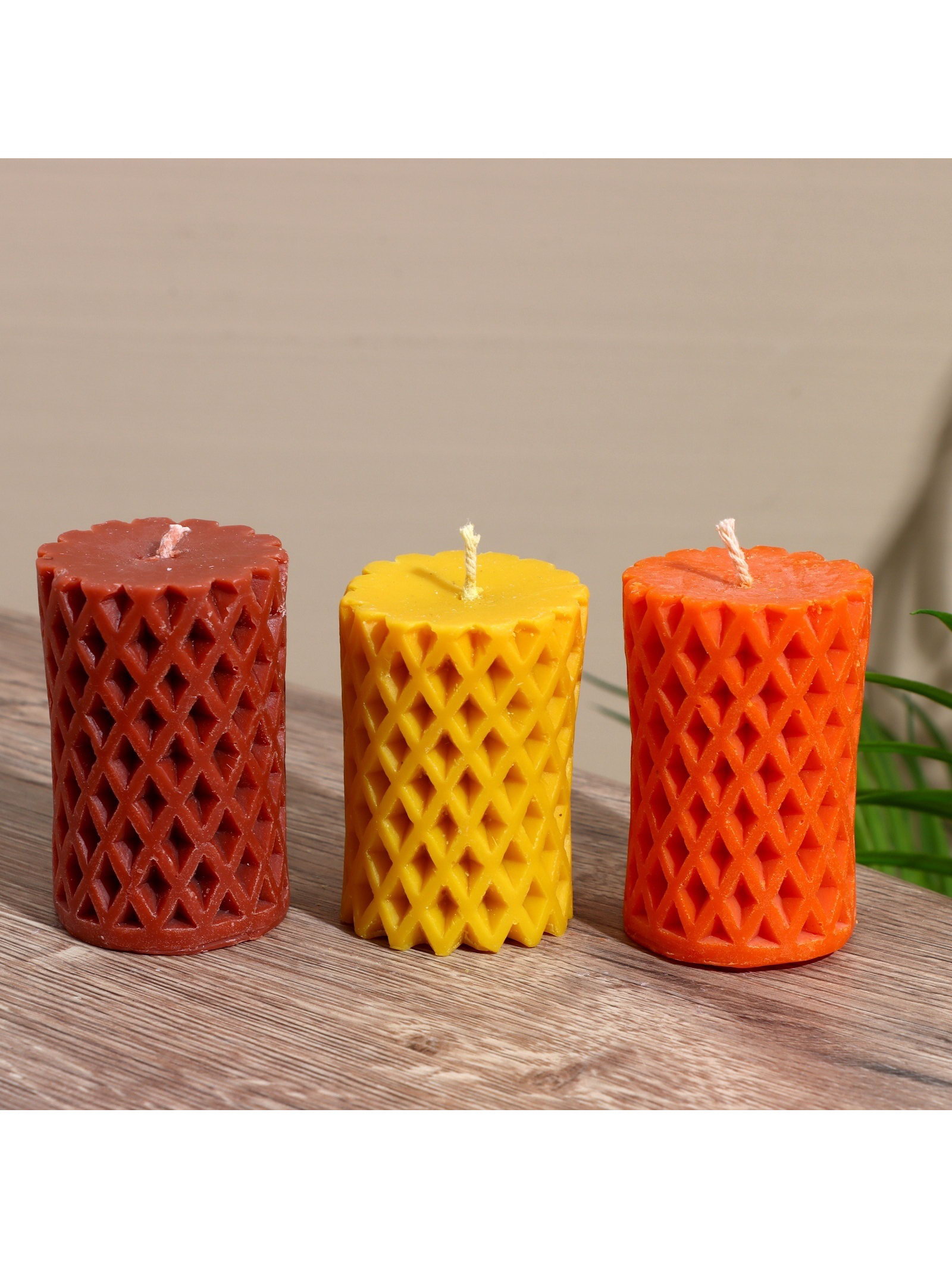 Свеча фигурная формовая "Столбик сеточка", 6x6x8 см, соевый воск, МИКС, 6x6x8 см., Индия
