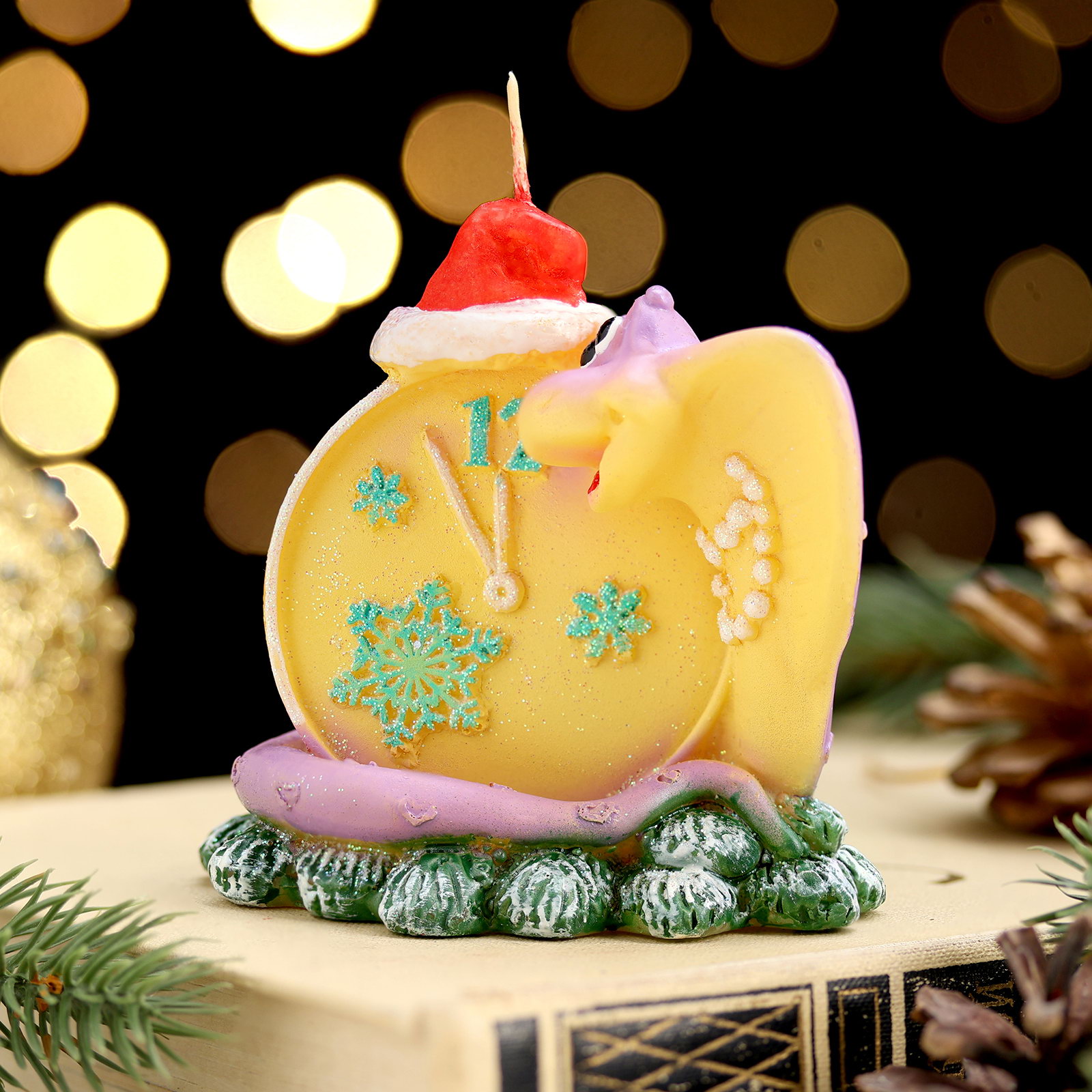 Свеча декоративная "Будильник новогодний. Змея", 7.5x6x9.5 см, Дарим Красиво, Россия