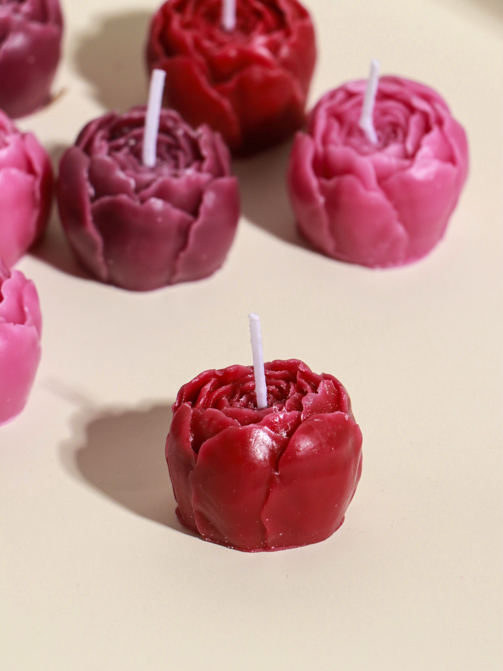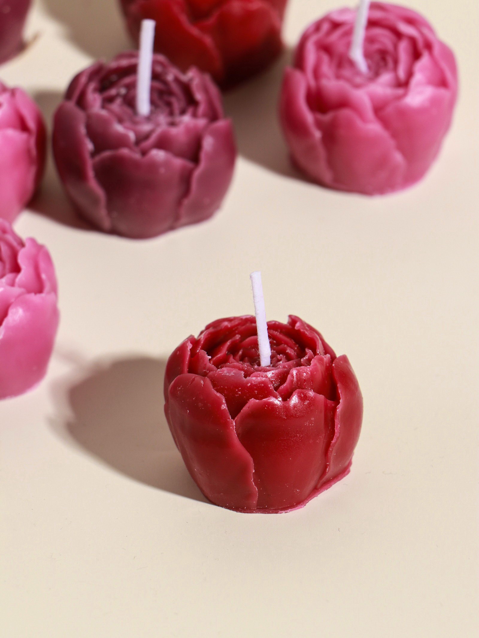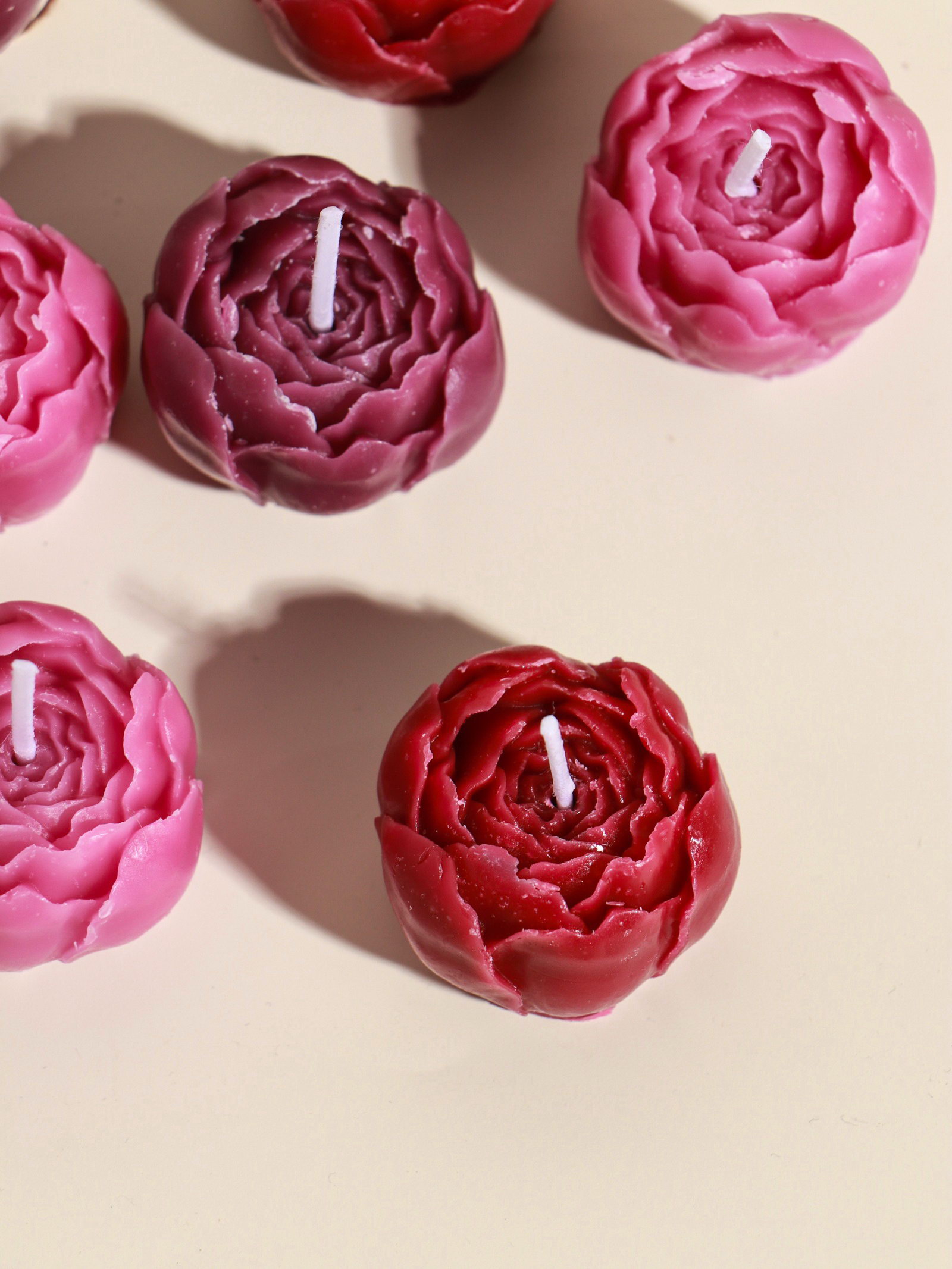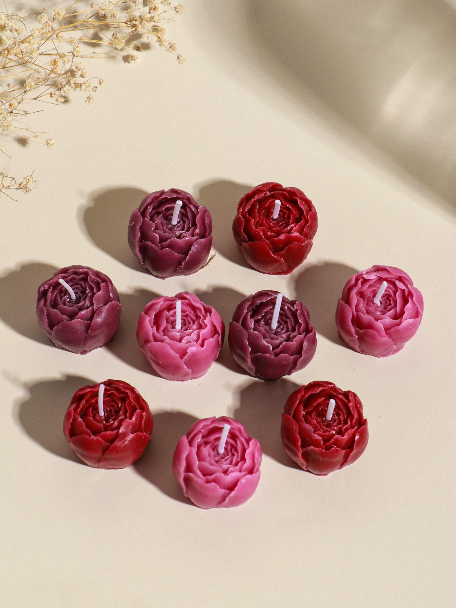 Набор свечей декоративных "Пионы", 9 шт. 3.5x3.5x2.5 см, розово-фиолетовые, 14x14x4 см, 14x14x4 см., Китай