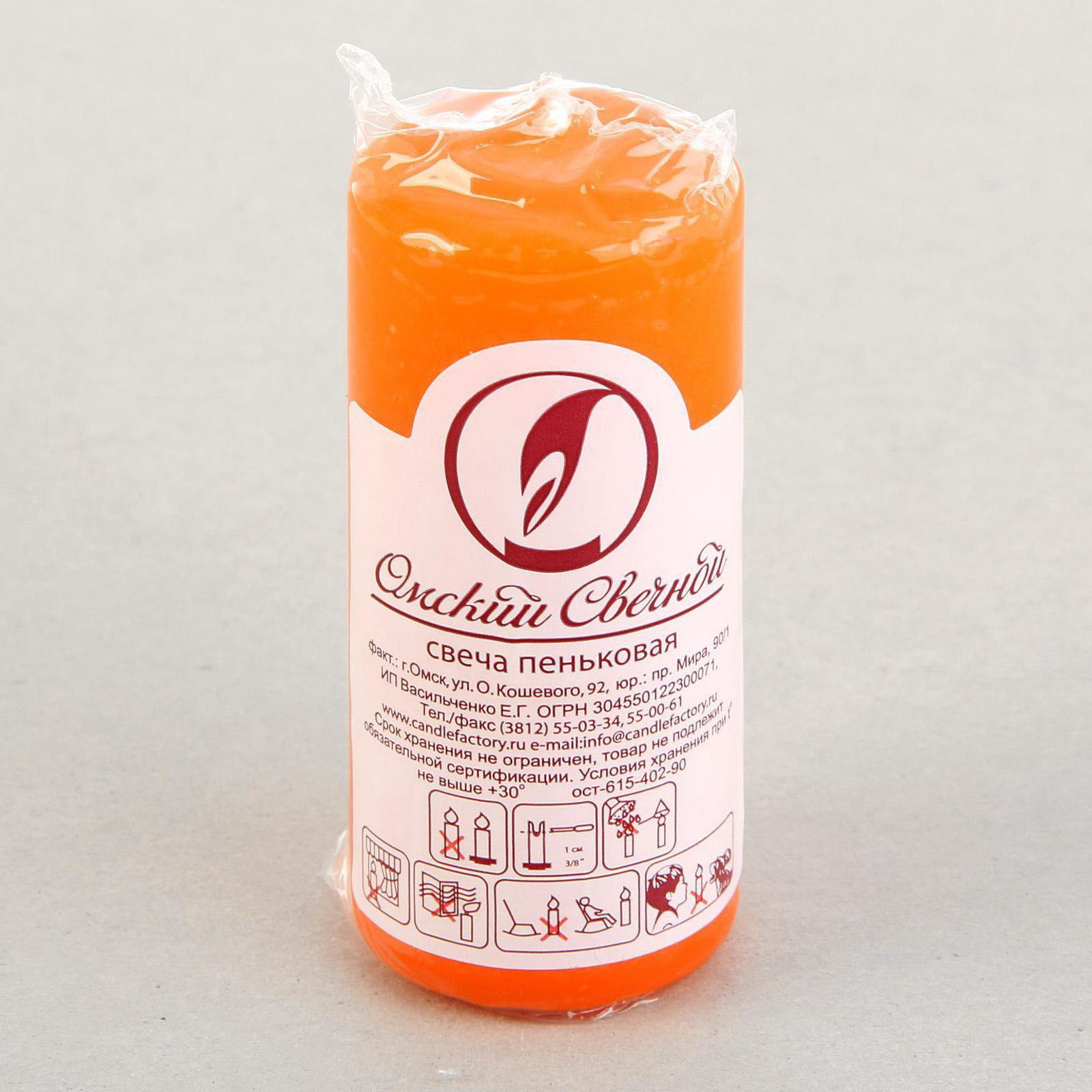 Свеча - цилиндр, 4x9 см, 11 ч, 90 г, оранжевая, 4x4x9 см., Омский свечной завод, Россия