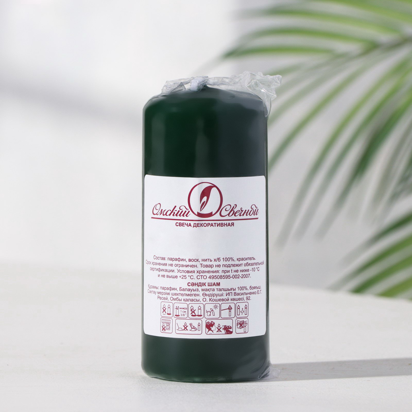 Свеча - цилиндр, 4x9 см, 11 ч, 90 г, т. зелёная, 4x4x9 см., Омский свечной завод, Россия