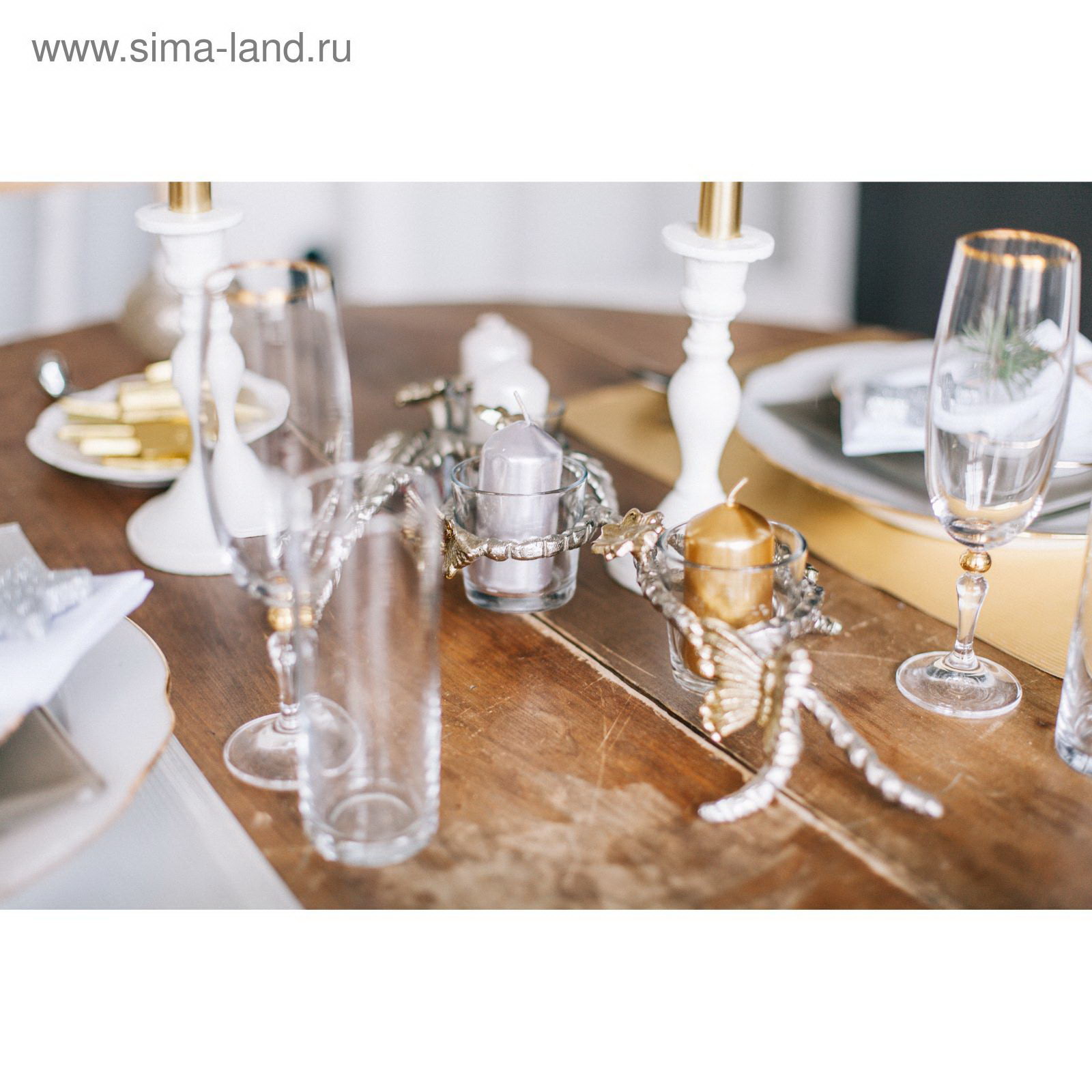 Набор свечей "Столбик", 4 шт., серебряный, 7x3.8 см, 3.8x3.8x7 см., Дарим Красиво, Китай