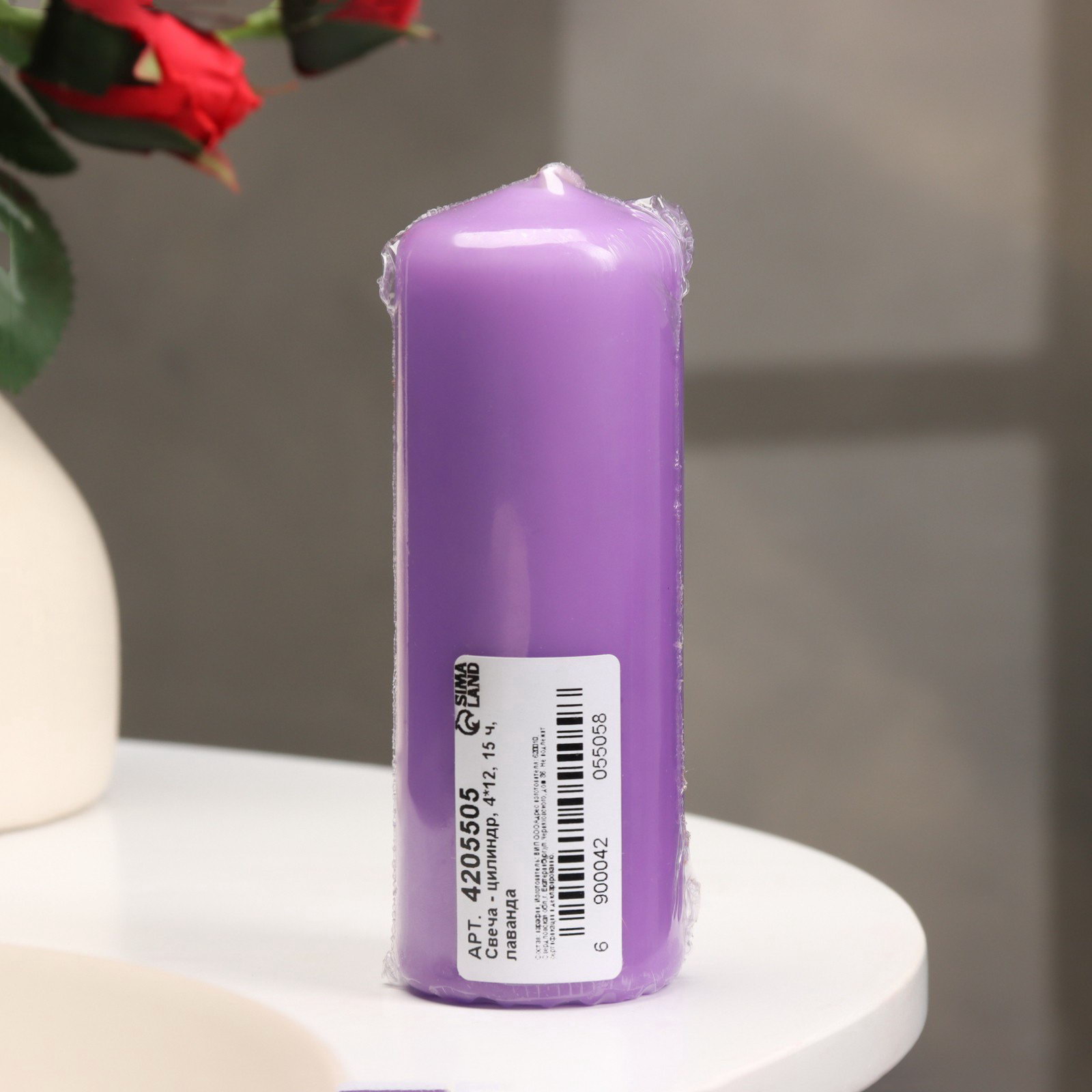 Свеча - цилиндр, 4x12 см, 15 ч, лаванда, Дарим Красиво, Россия