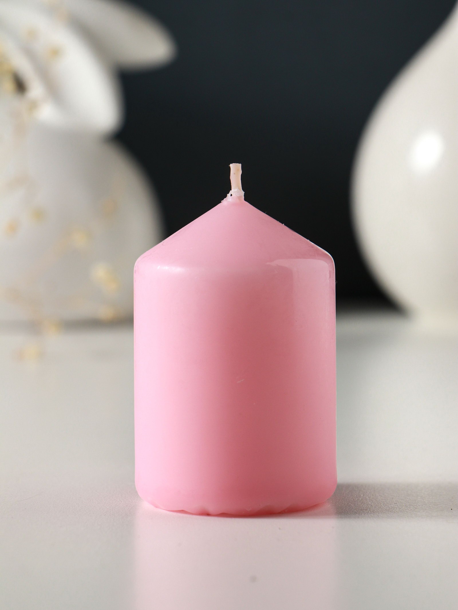Свеча-цилиндр 4x6 см, 70 г, розовый, Дарим Красиво, Россия